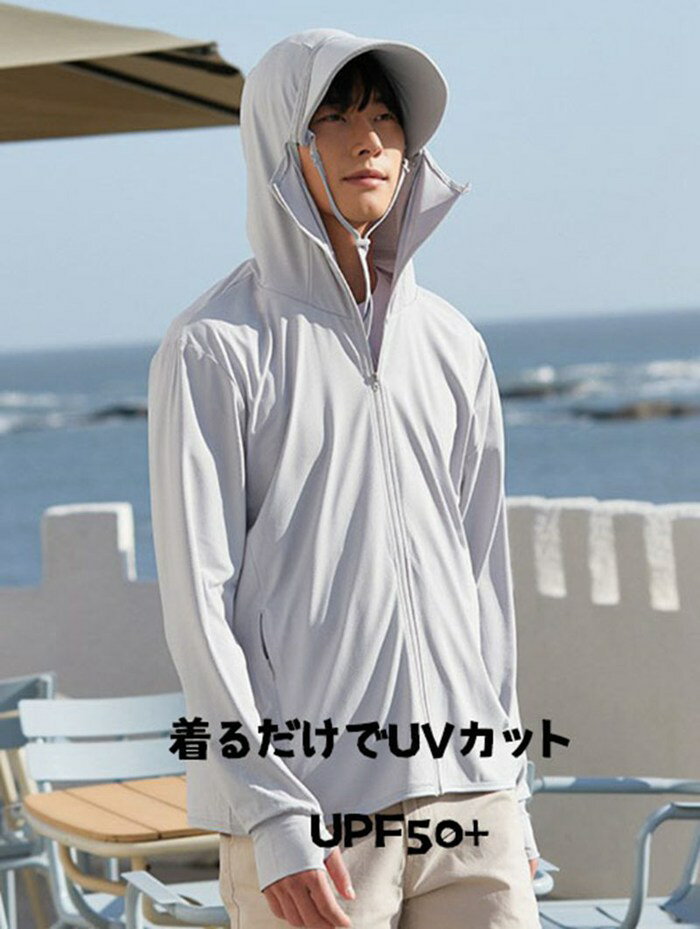 UVパーカー メンズ 接触冷感 紫外線対策 吸汗速乾 フード付き フェイスカバー付き ツバ着脱可能 カーディガン ジップアップ 男女兼用 ラッシュガード UVガード 日よけ 日除け レジャー 通勤 運転用 自転車 冷房対策 日焼け対策 UV対策 日焼け防止服