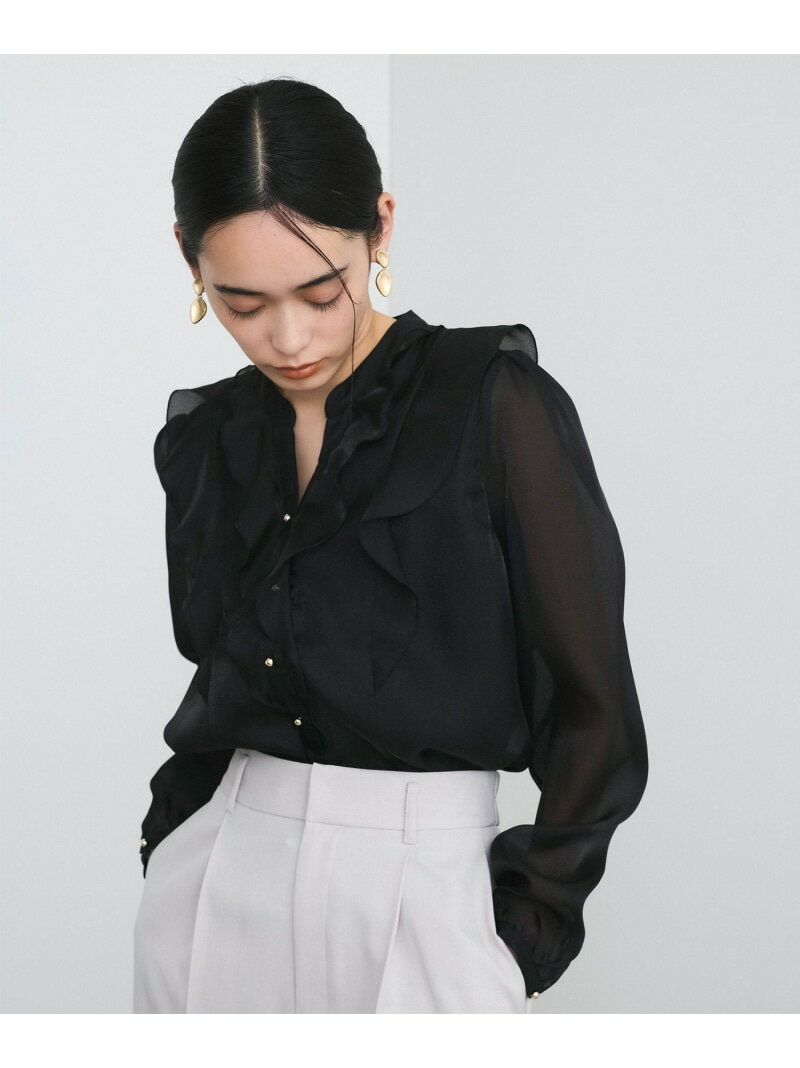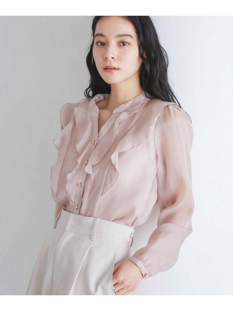 【洗える】シアーラッフルブラウス VIS ビス トップス シャツ・ブラウス ブラック ピンク ベージュ【送料無料】[Rakuten Fashion]