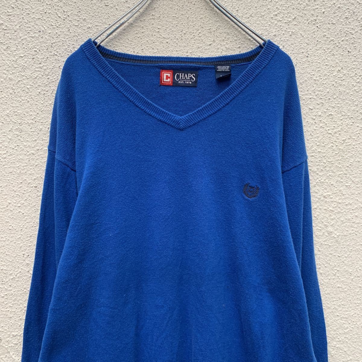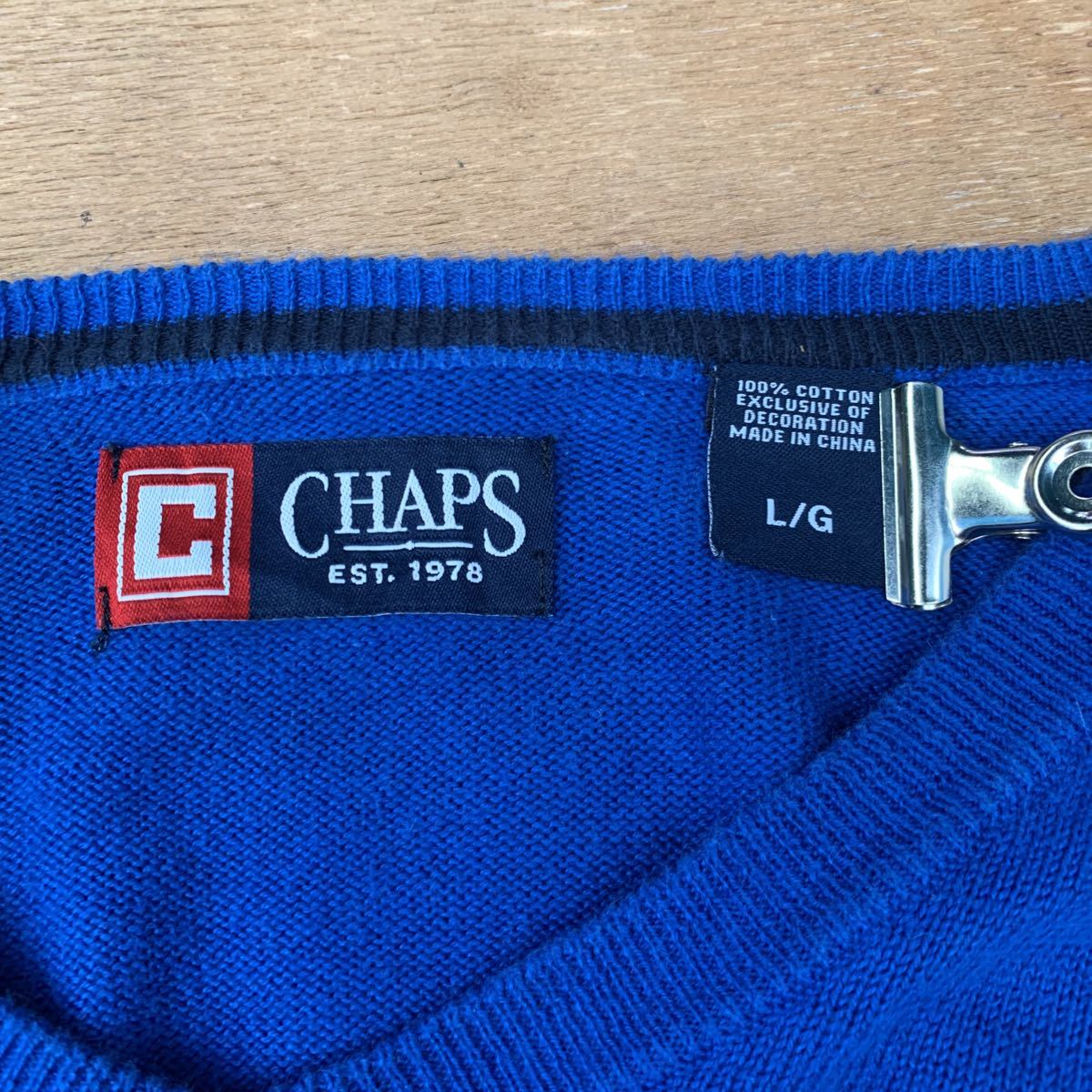 【中古】【古着】 CHAPS コットン ニット セーター L ブルー チャップス ワンポイントロゴ 古着卸 アメリカ仕入れ a412-5328