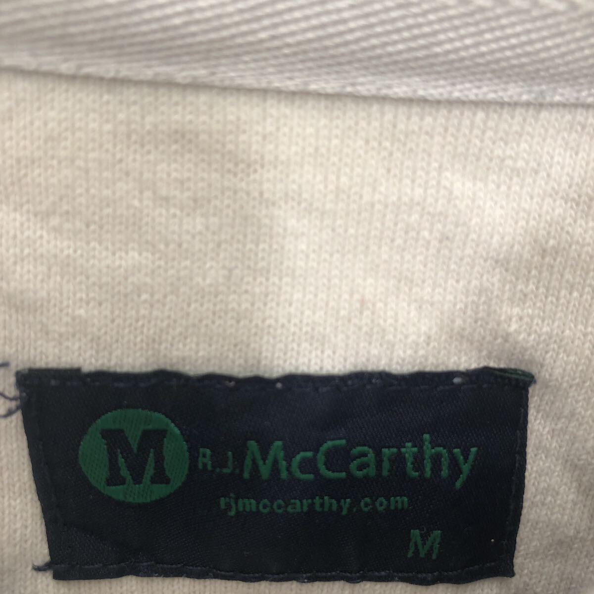 【中古】【古着】 MCCARTHY 長袖 ポロシャツ M ホワイト ネイビー ボーダー 刺繍 古着卸 アメリカ仕入 a604-5782