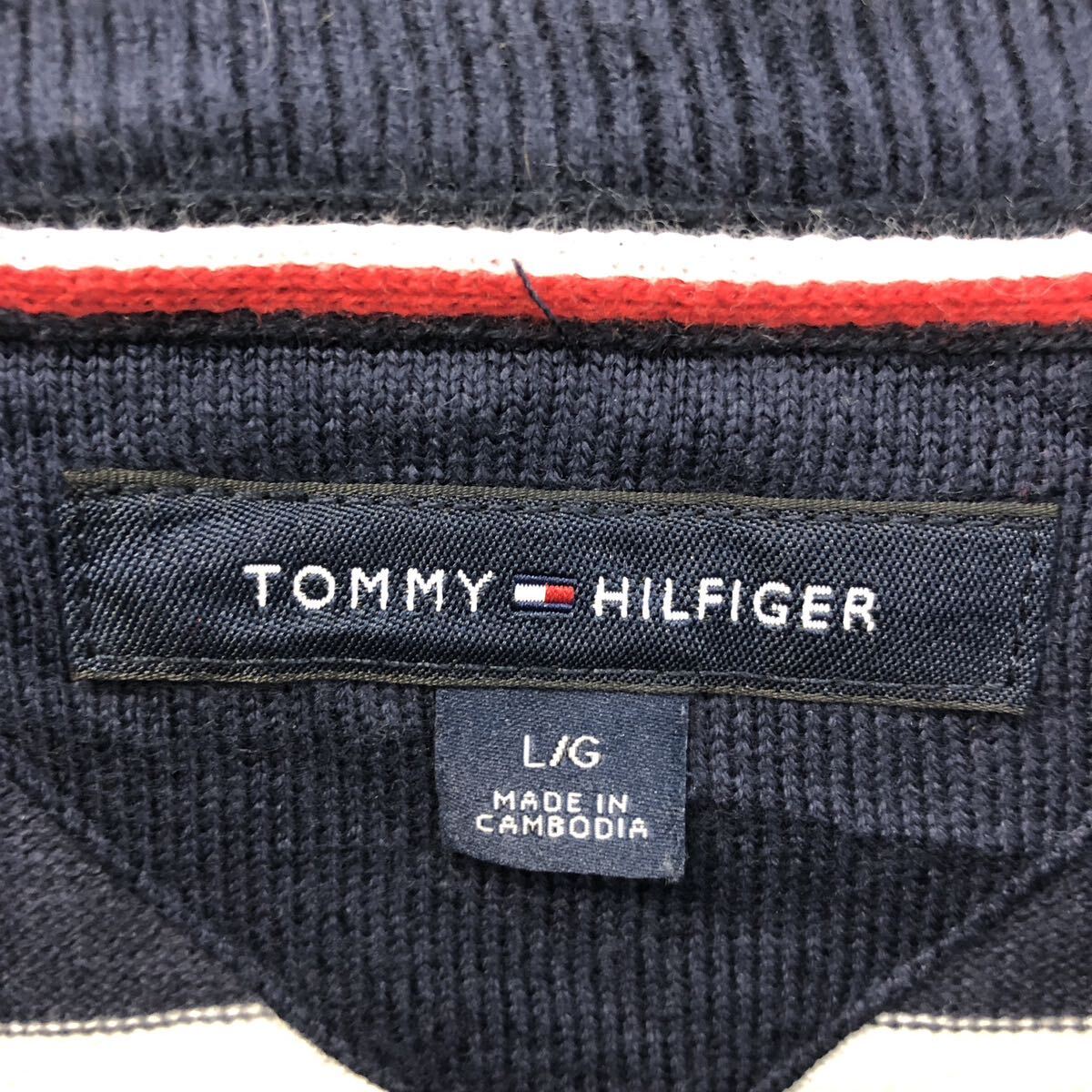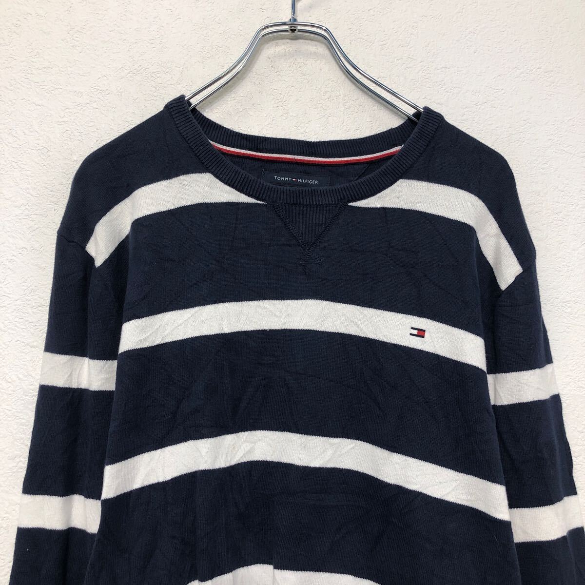 【中古】【古着】 TOMMY HILFIGER コットン ニット セーター トミーヒルフィガー L ネイビー ボーダー 古着卸 アメリカ仕入 a605-8252