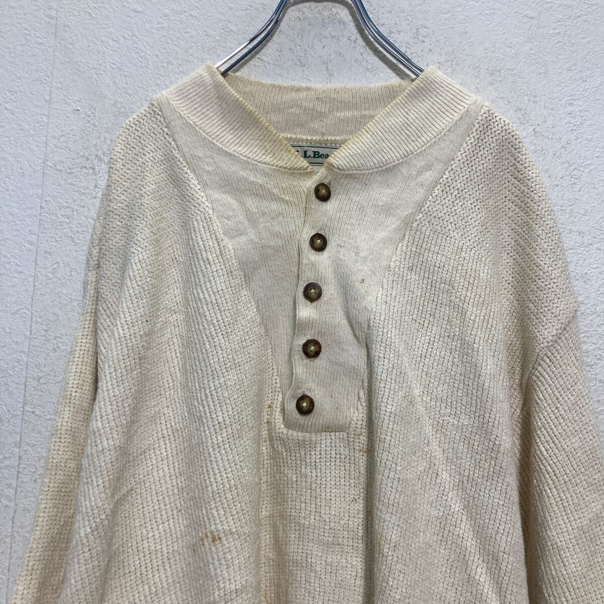 【中古】【古着】 L.L.Bean コットン混紡 ハーフボタニット セーター L アイボリー エルエルビーン 古着卸 アメリカ仕入 a702-5785