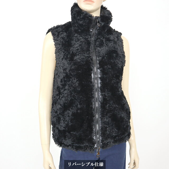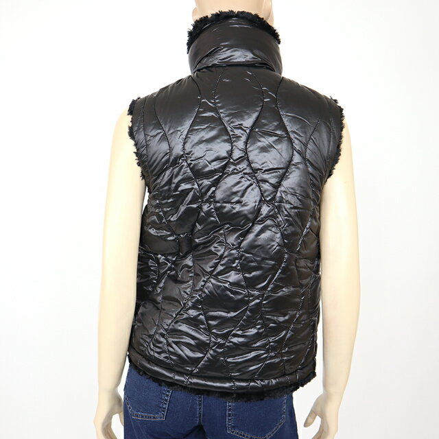 ガウディ(GAUDI)レディース 中綿ベスト ブラック系 ナイロンフェイクファーリバーシブル (サイズ/38/40/42)*gu0035