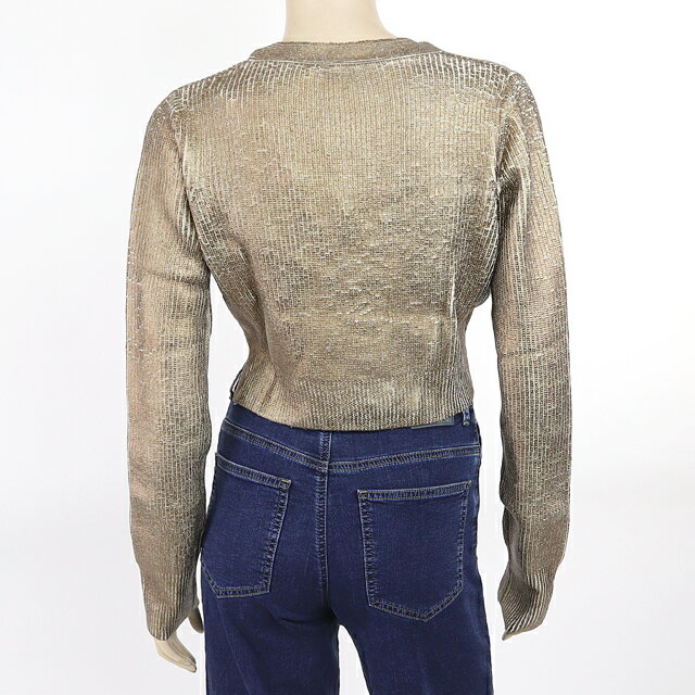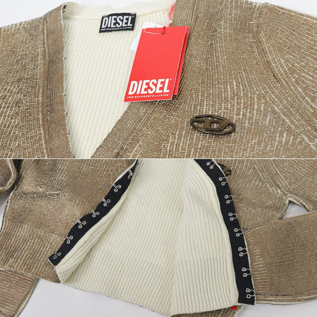 ディーゼル(DIESEL)レディース 訳あり 長袖カーディガン ゴールド系 ホック留め 胸にロゴプレート (サイズ/M)*el0016