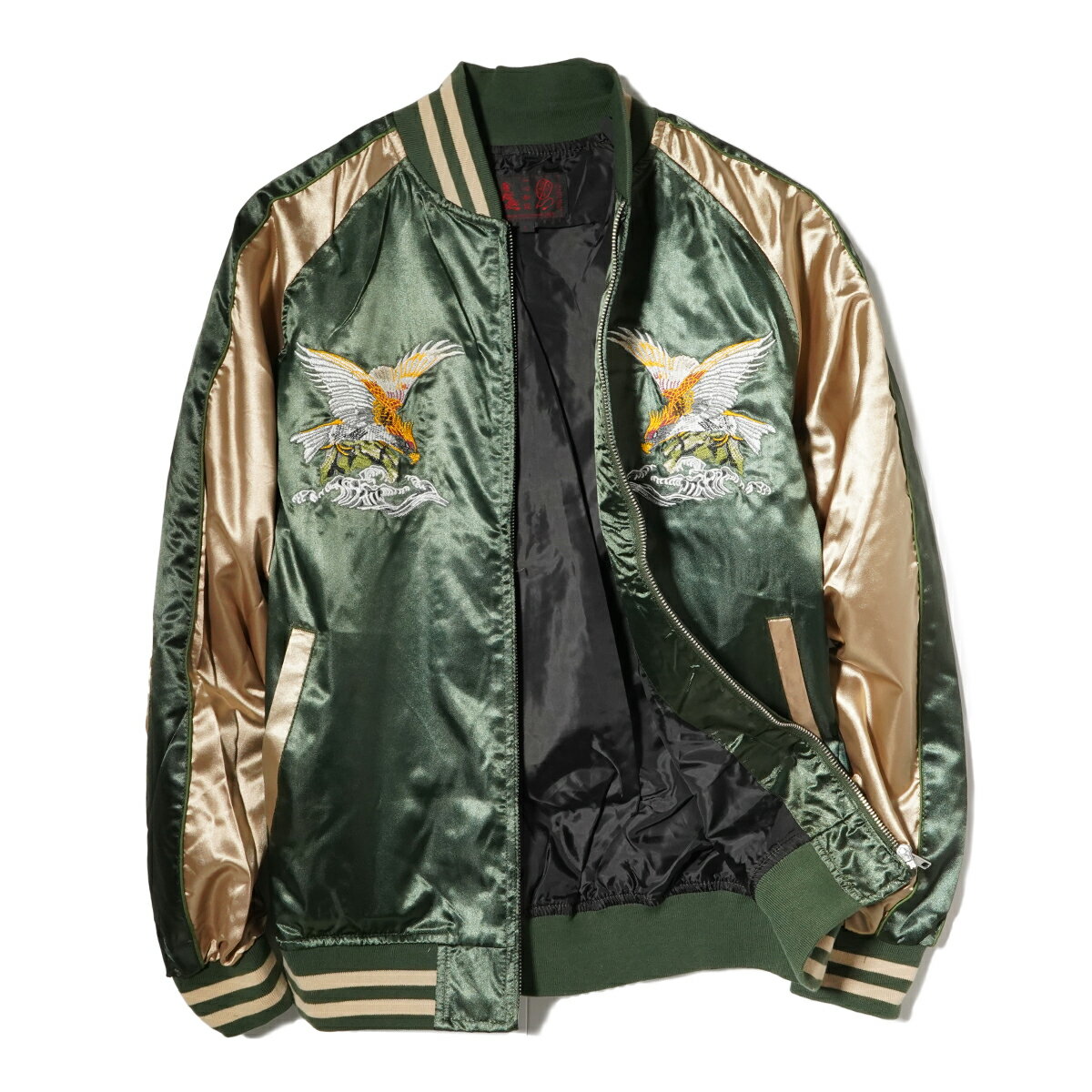 スカジャン メンズ サテンジャンパー スーベニア ジャケット スカジャン 横須賀 ジャンバー サテンジャケット 金 銀 黒 ブラック グリーン 緑 イーグル 鷲 和柄 ラグラン ブルゾン 春 秋 冬 スーベニアジャケット メンズ スカジャン ライトアウター アウター MA-1 送料無料
