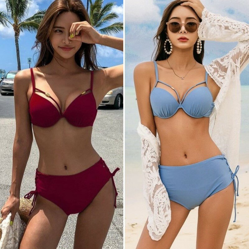 ビキニ セット 水着 ストラップ 編み上げ スイムドレス ラウンドカップ ハイウエスト パッド入り ワイヤーあり レディース CH3 ルピタ