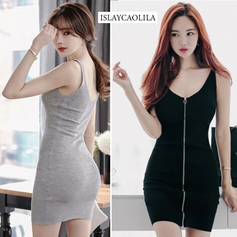 ファスナー ワンピース ジップ タイトミニ クラブドレス ワイド vネック ノースリーブ オープンバック ボディコン レディース C98 エミリー