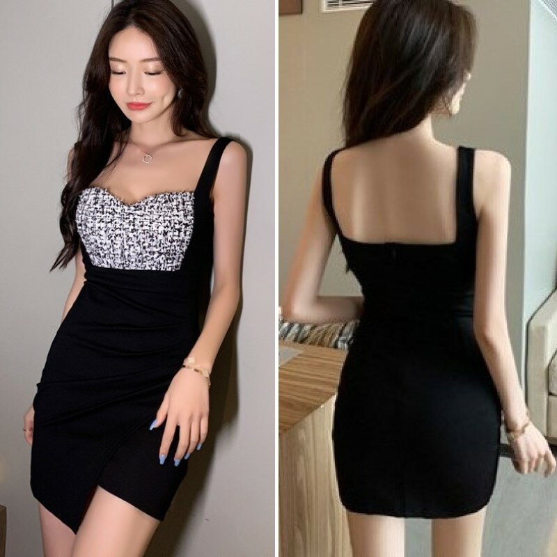 ベアトップ ワンピース ストラップ タイト ミニ クラブドレス ノースリーブ ウエストマーク カシュクール レディース DY6 コンスタ
