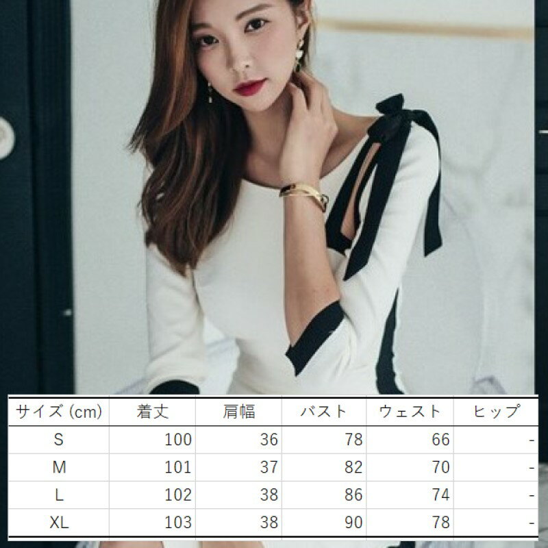 サイドライン ワンピース ショルダー リボン タイト クラブドレス ボートネック 七分袖 オープンバック ペンシル レディース CQ3 ロザリア