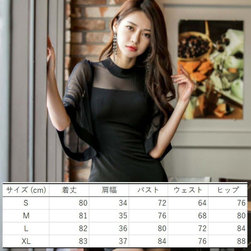 シースルー ワンピース ベアトップ タイトミニ クラブドレス クルーネック シアー ベルスリーブ ボディコン ミニ レディース C20 エリサ