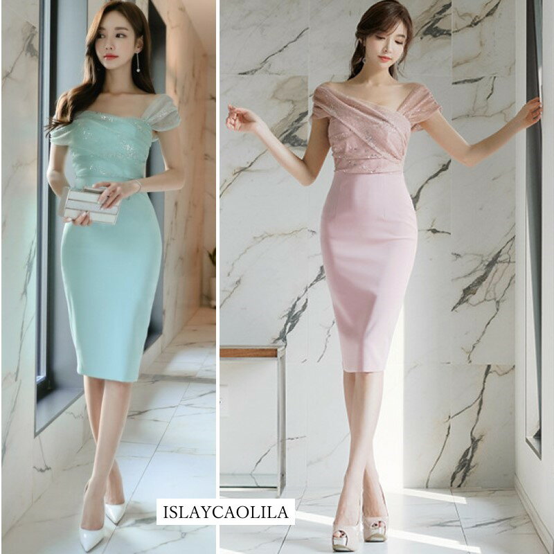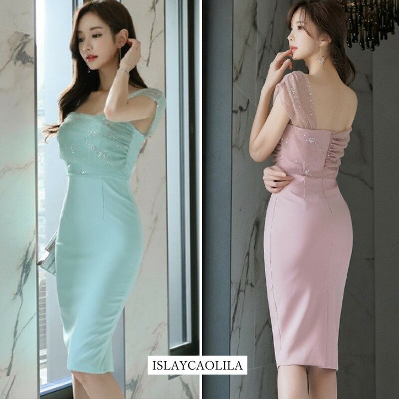 ラメ入り ワンピース オフショルダー タイト クラブドレス ノースリーブ オープンバック ウエストマーク ひざ丈 レディース CA3 フェア