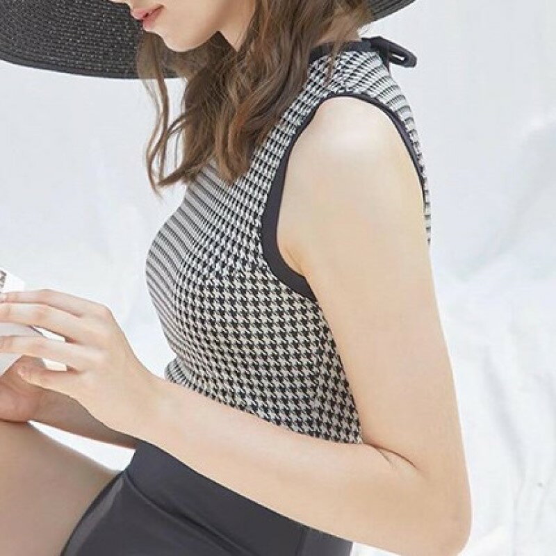 ワンピース 水着 クルーネック オープンバック スイムドレス リボン ウエストマーク パッド入り ワイヤーなし レディース D16 カロリナ