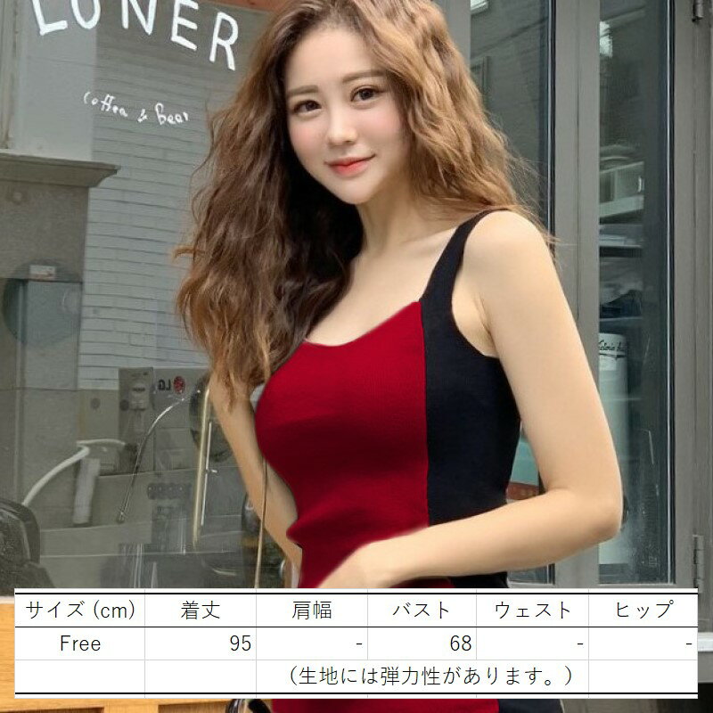 ニット ワンピース バイカラー タイトミニ クラブドレス キャミソール オフショルダー ラウンドネック ボディコン レディース DH0 ジュリエ