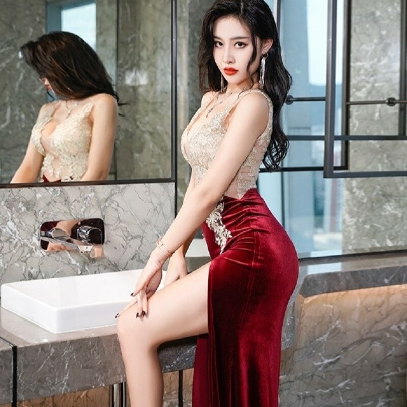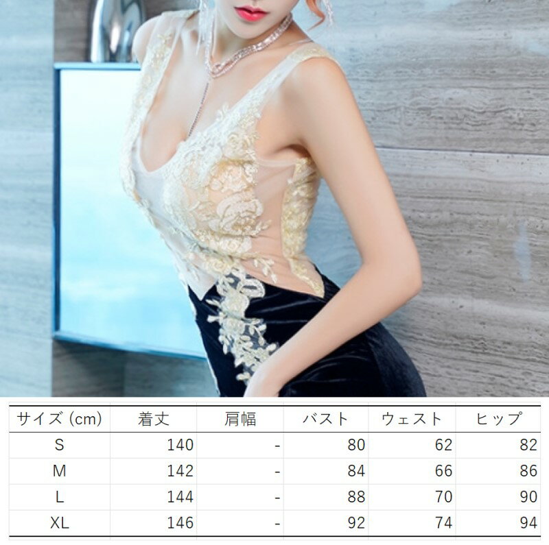 シースルー ワンピース レース ロング スリット イブニングドレス ディープ Vネック ノースリーブ ハイウエスト マキシ レディース DL0 サーヤ