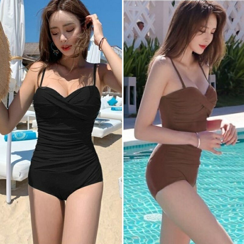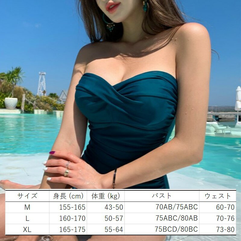 ワンピース 水着 キャミソール ベアトップ スイムドレス ストラップ オープンバック パッド入り ワイヤーなし レディース D58 コリンネ