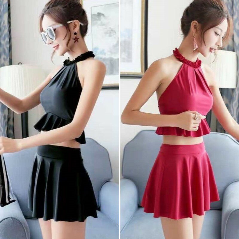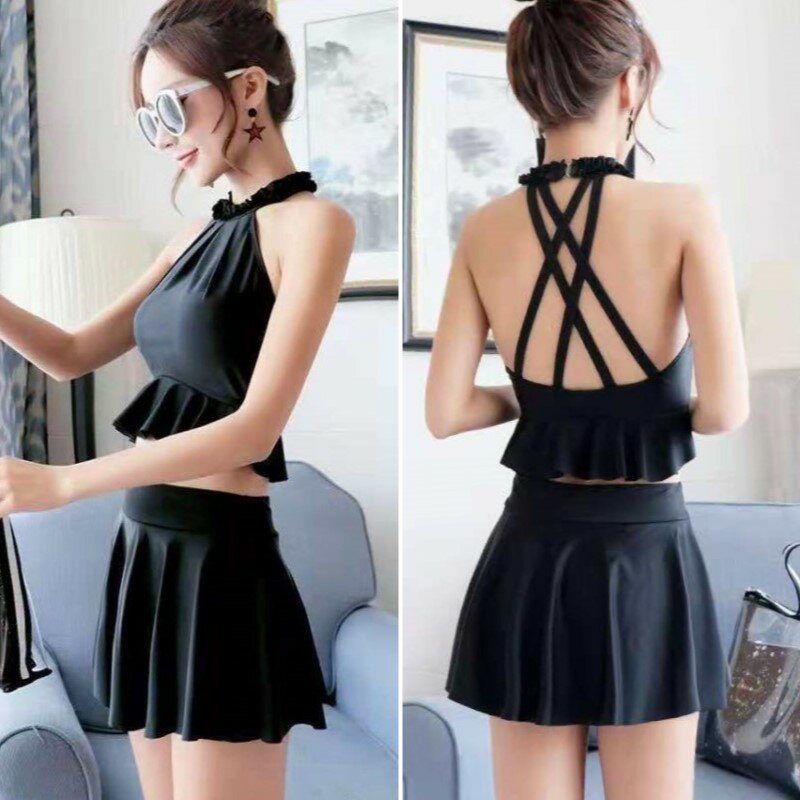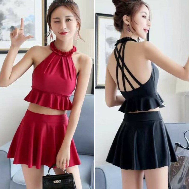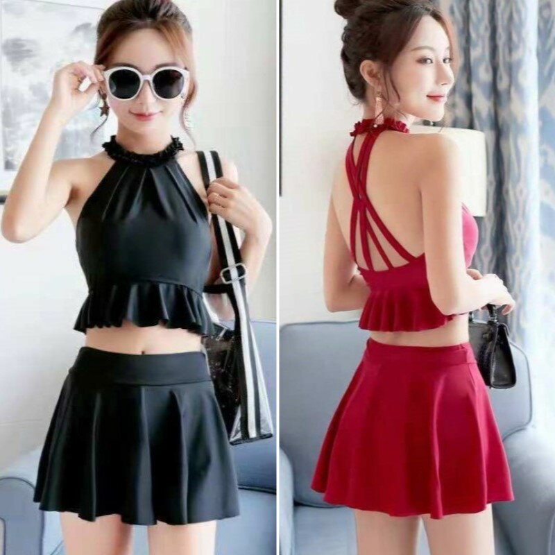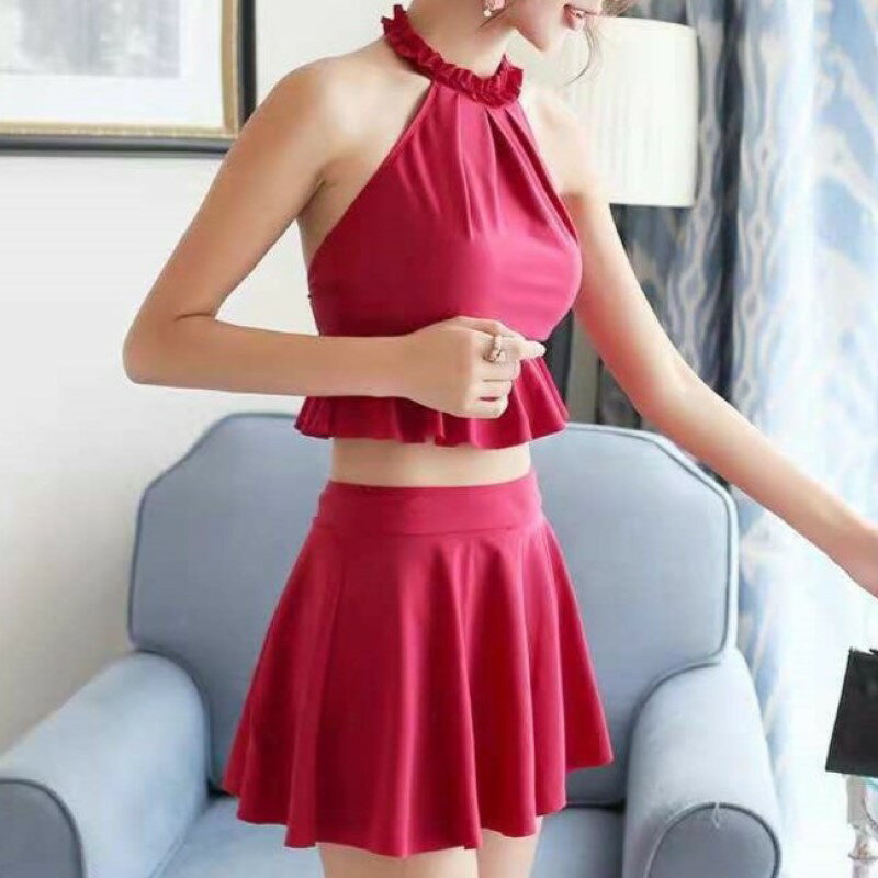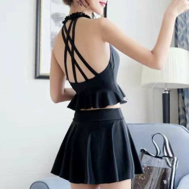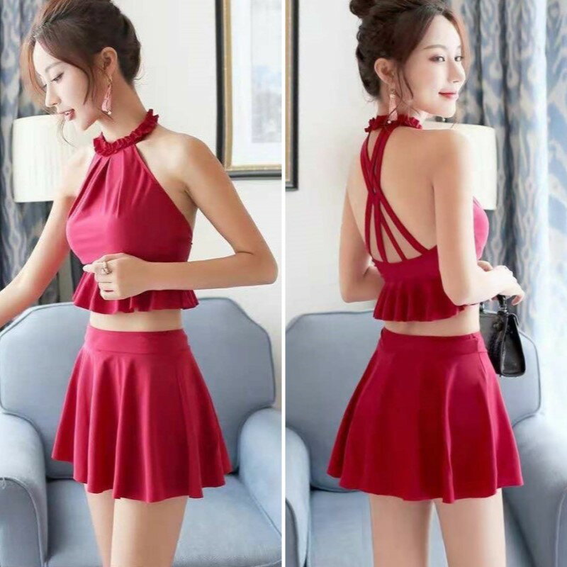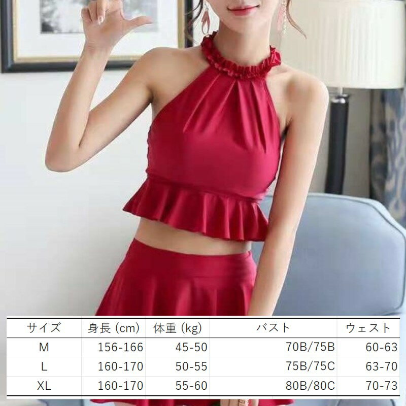 ビキニ 水着 フリル バッククロス スイムドレス スカート 体形カバー セパレート パッド入り ワイヤーあり レディース E08 エイミー