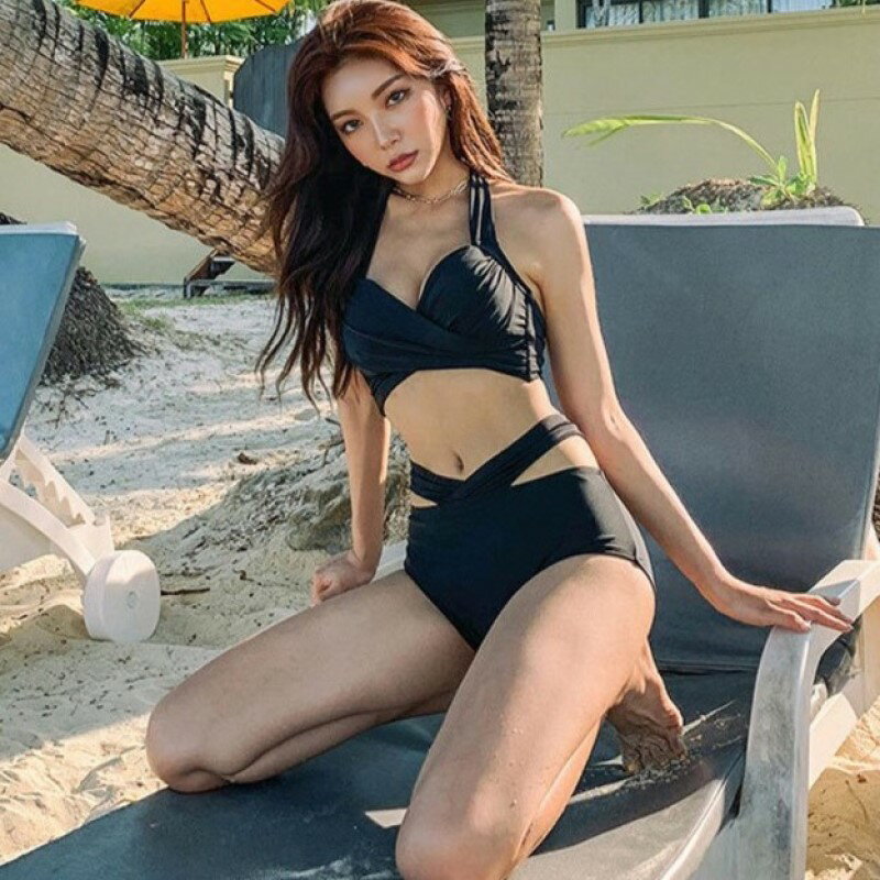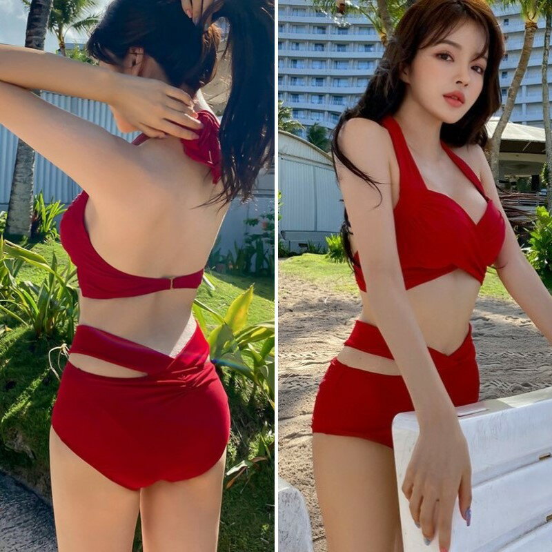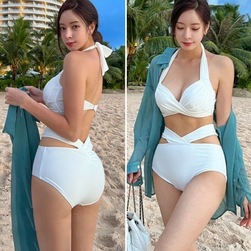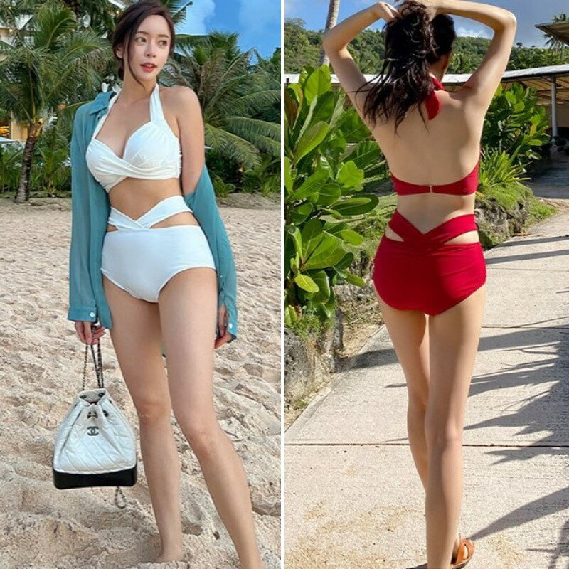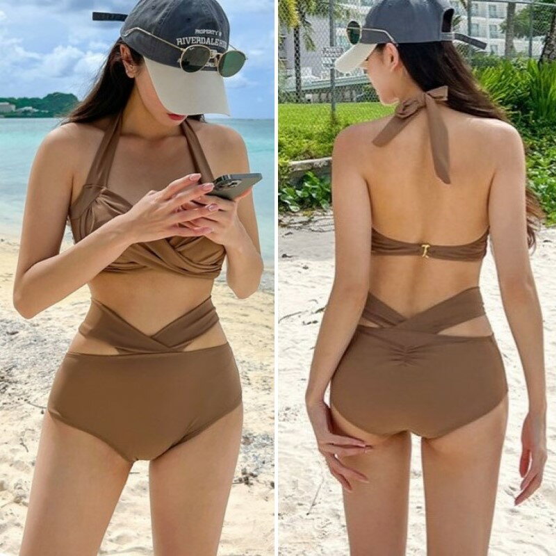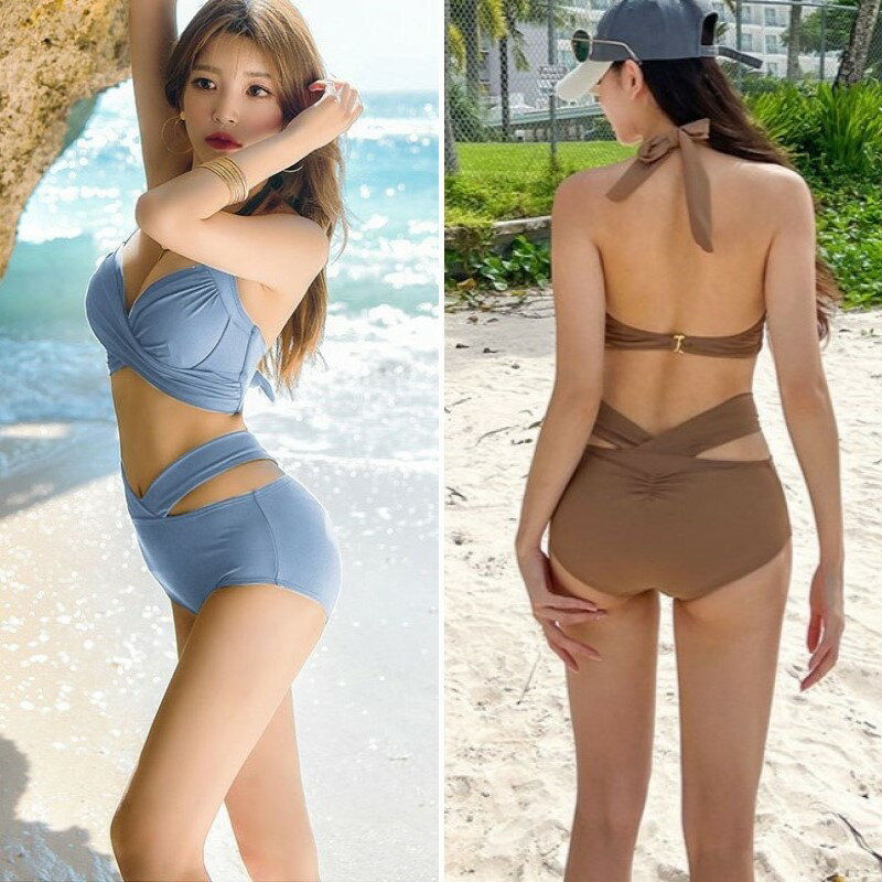 ビキニ セット 水着 カシュクール クロス スイムドレス ホルターネック ウエストマーク パッド入り ワイヤーあり レディース E52 マレーナ