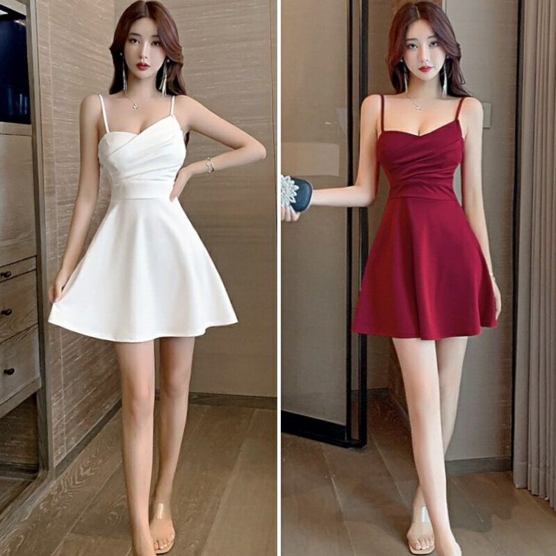 キャミソール ワンピース オフショルダー フレア ミニ クラブドレス ベアトップ ノースリーブ ウエストマーク レディース EB3 リナ