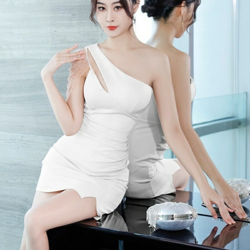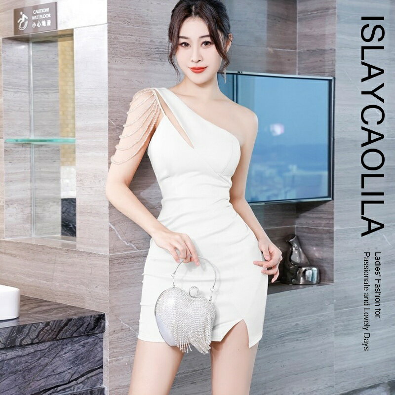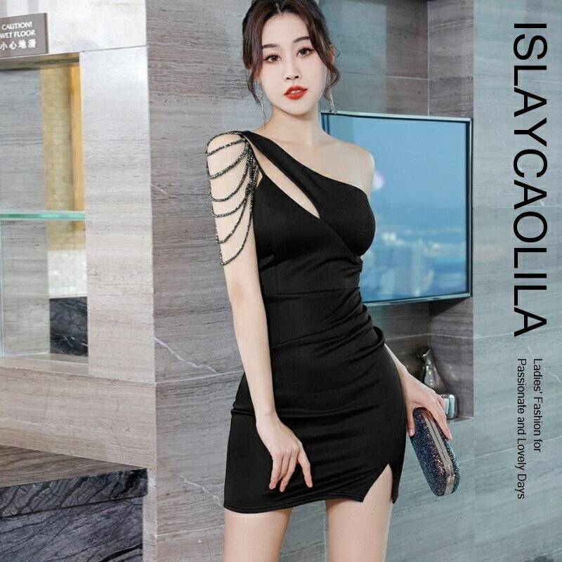 ワンショルダー ワンピース ビジュー タイト ミニ クラブ ドレス オフショルダー ノースリーブ レディース EB7 エラ