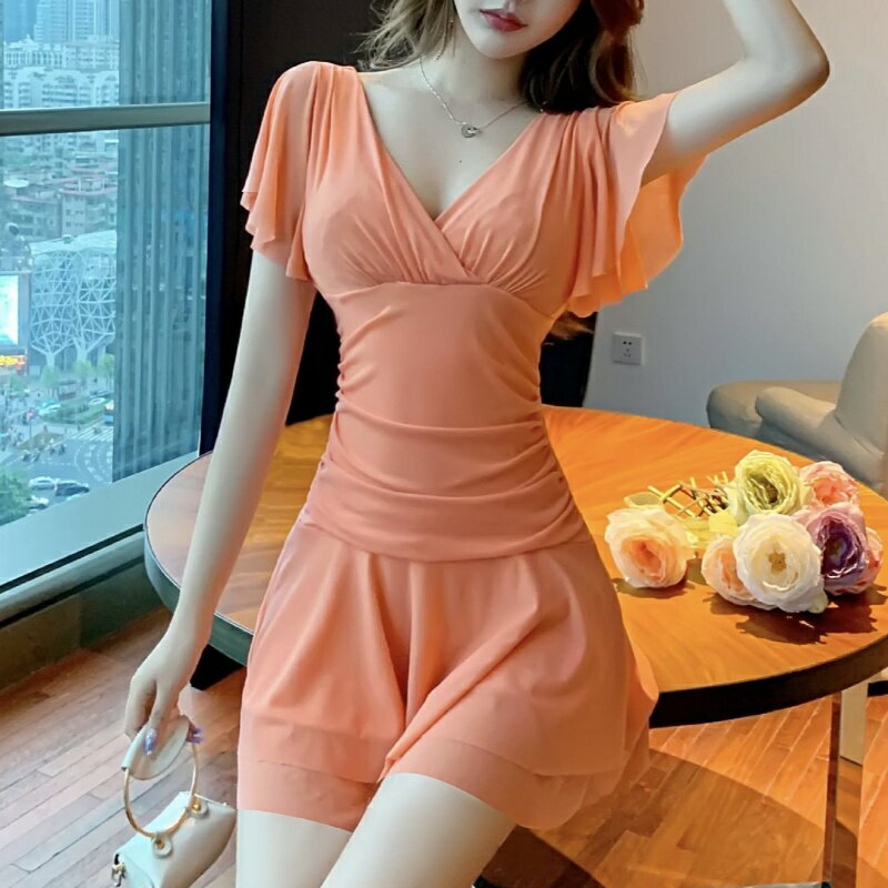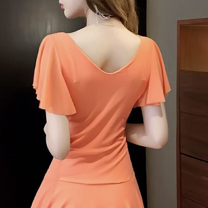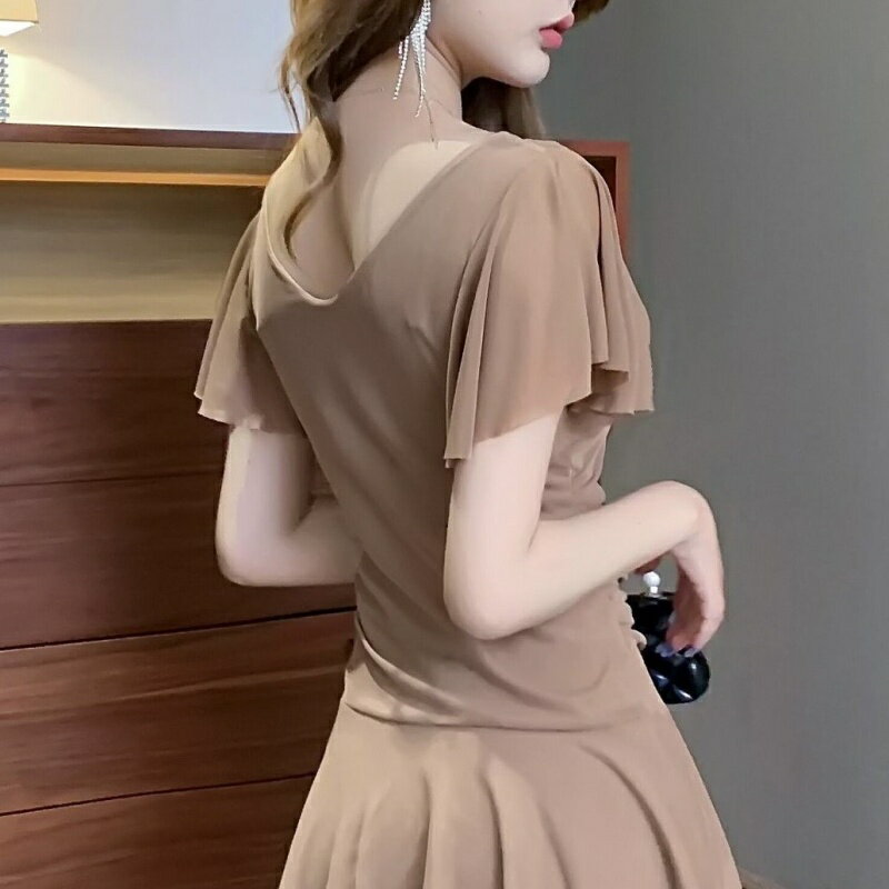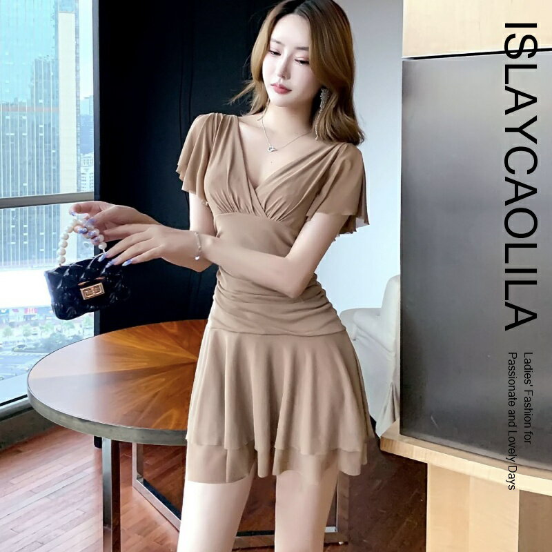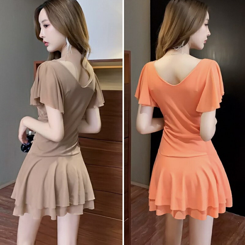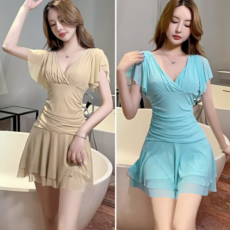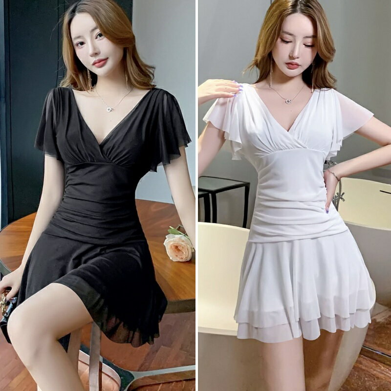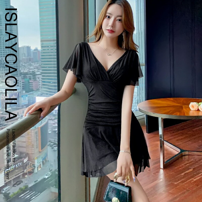 フリル ワンピース キャミソール フレア ミニ クラブドレス Vネック ノースリーブ ウエストマーク レディース EE6 イェナ