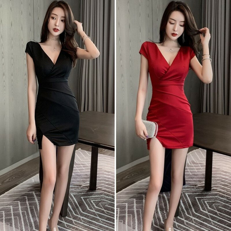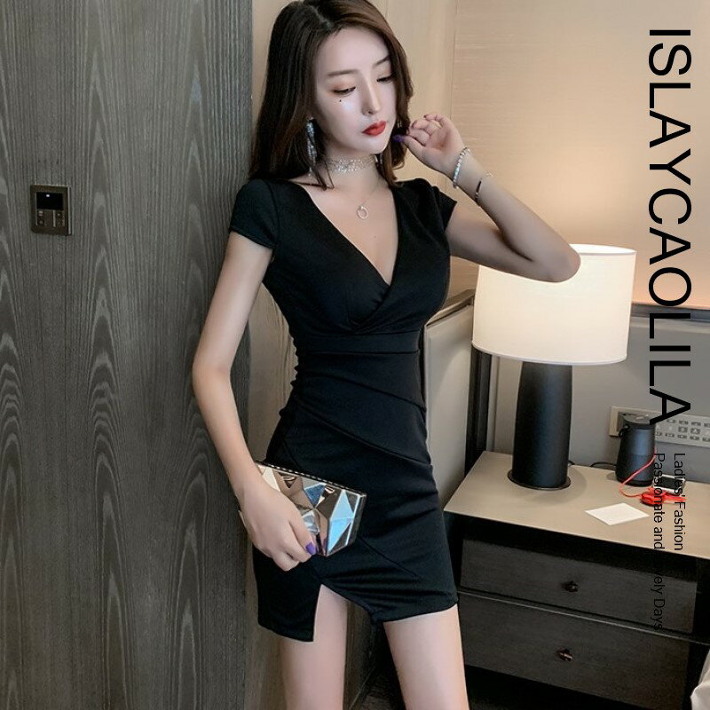 カシュクール ワンピース Vネック タイトミニ クラブドレス ノースリーブ ウエストマーク アシンメトリー ミニ レディース DS8 ユリー
