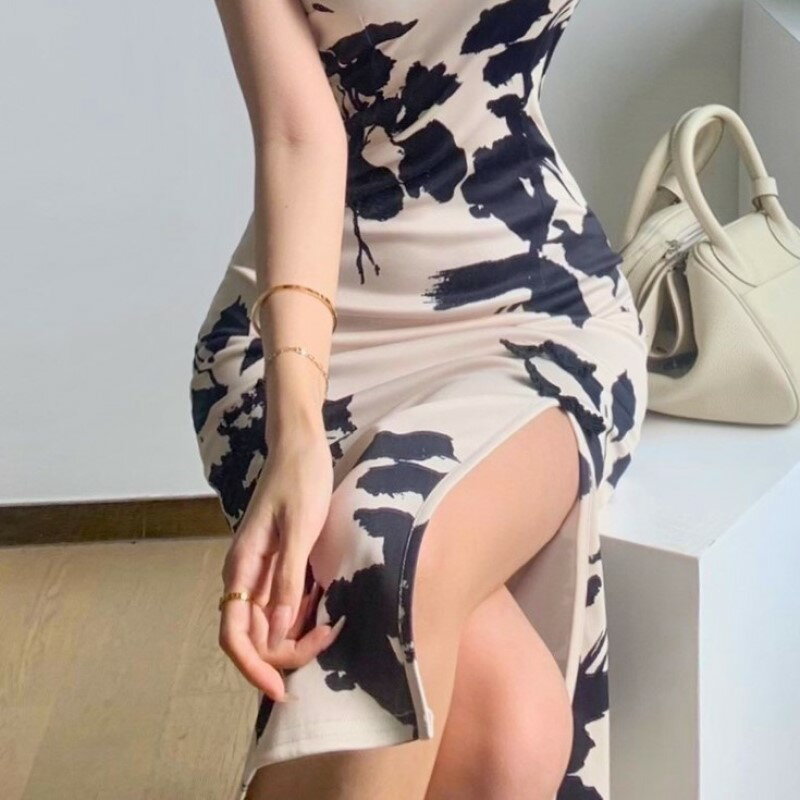スリット ワンピース オフショルダー タイト ミディ クラブ ドレス アシンメトリー ノースリーブ ひざ丈 レディース DZ3 エディー