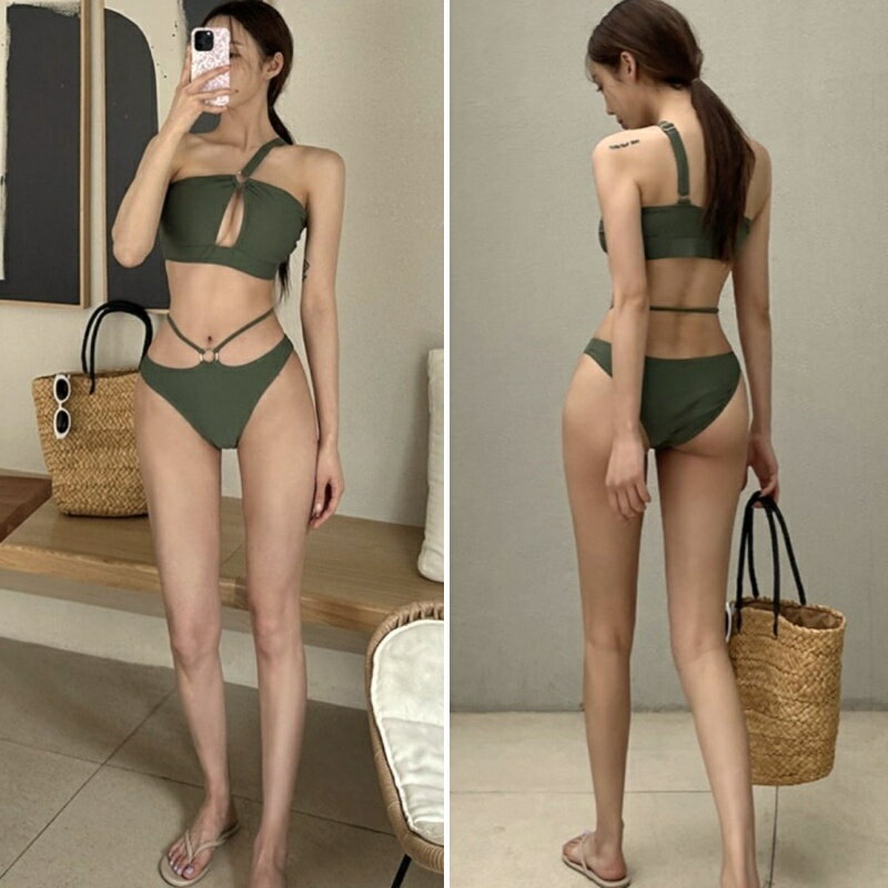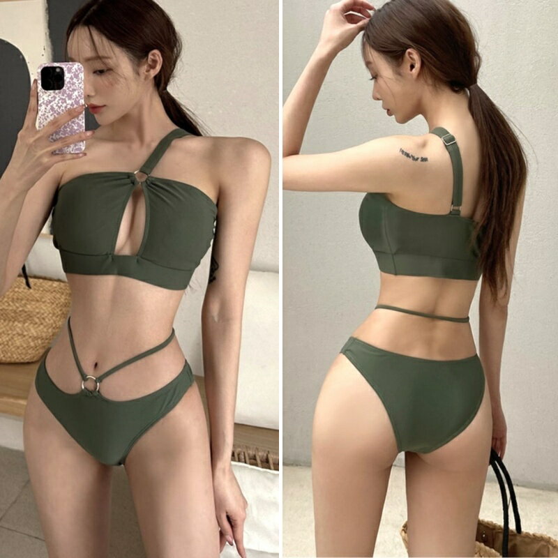 水着 レディース ビキニ ビキニセット セパレート 2点セット スイムウエア スイムドレス ワンショルダー ストラップ ローライズ パッド入り ワイヤーなし EG5 アデラ