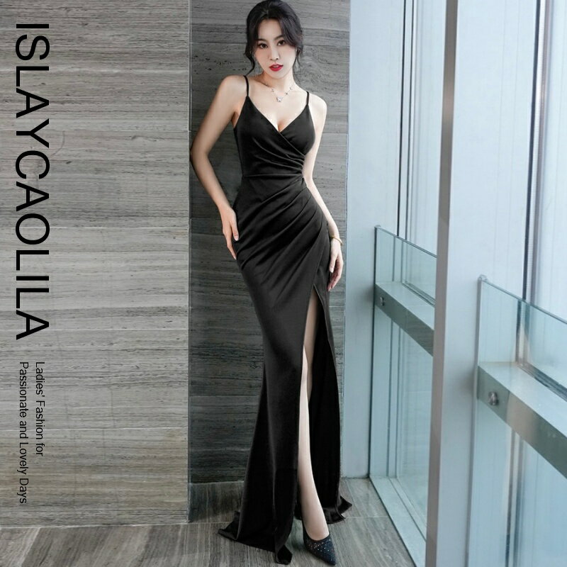 キャバドレス ロングドレス クラブドレス パーティードレス ワンピース タイト ロング スリット キャミソール マキシ イブニングドレス Vネック ノースリーブ レディース EK0 エミリ
