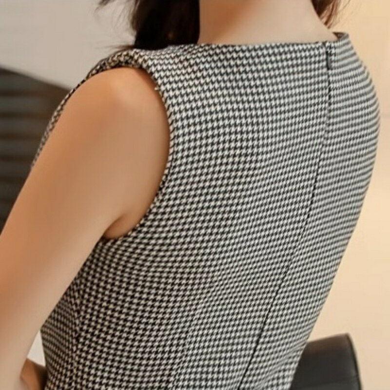 キャバドレス ミディドレス クラブドレス パーティードレス ワンピース タイト ミディ ギンガム チェック クルーネック ノースリーブ ハイウエス レディース EJ5 リザ