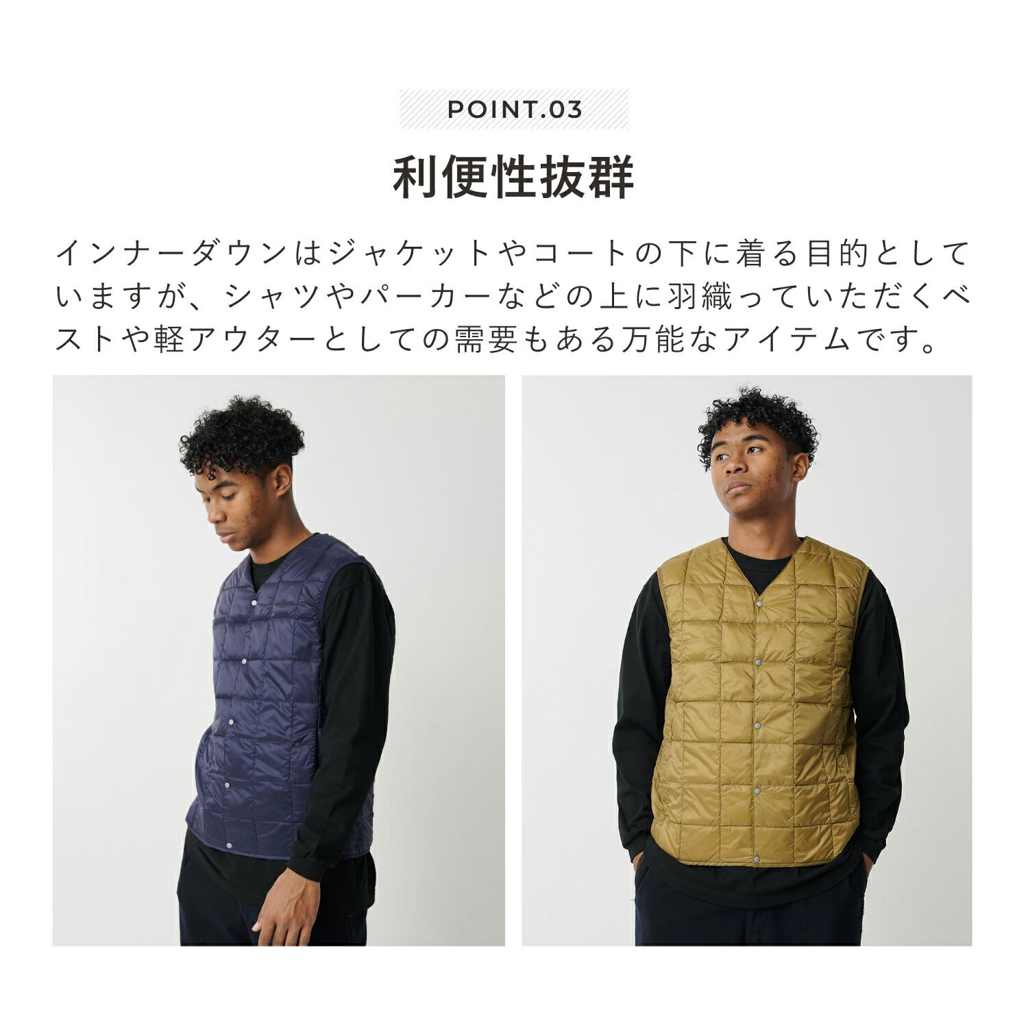 TAION V NECK BUTTON DOWN VEST タイオン インナーダウン ベスト アウター メンズ ベーシック Vネックボタン 防寒 ブラック グレー ネイビー ベージュ 黒 001
