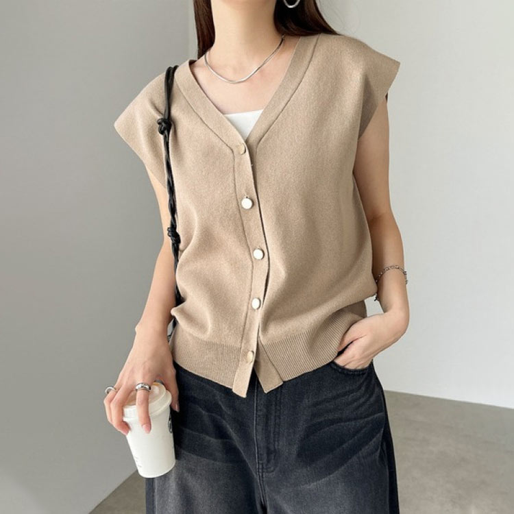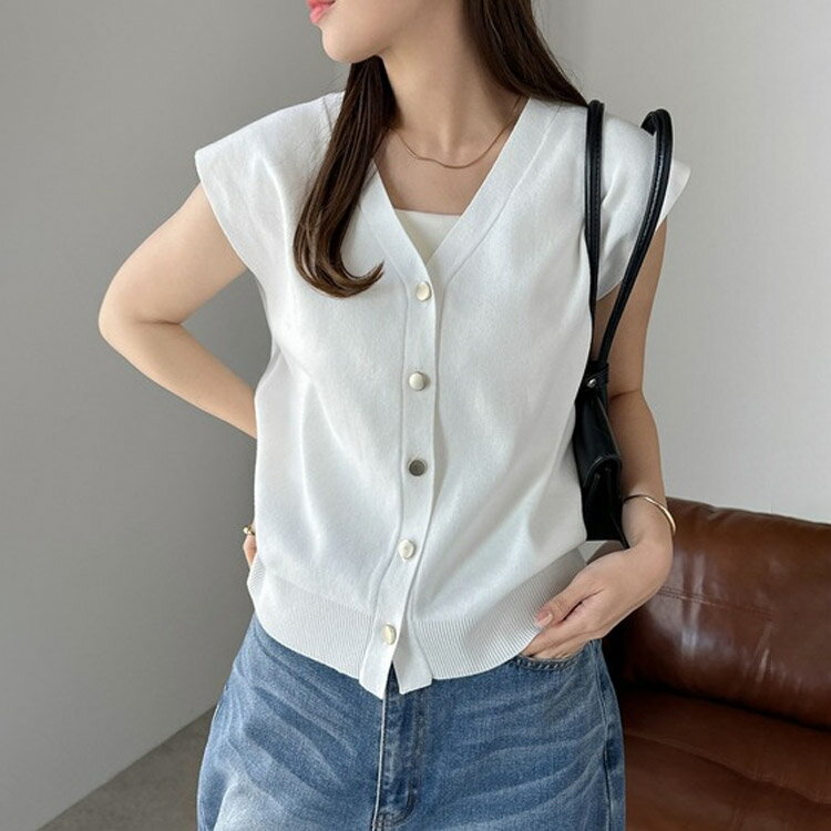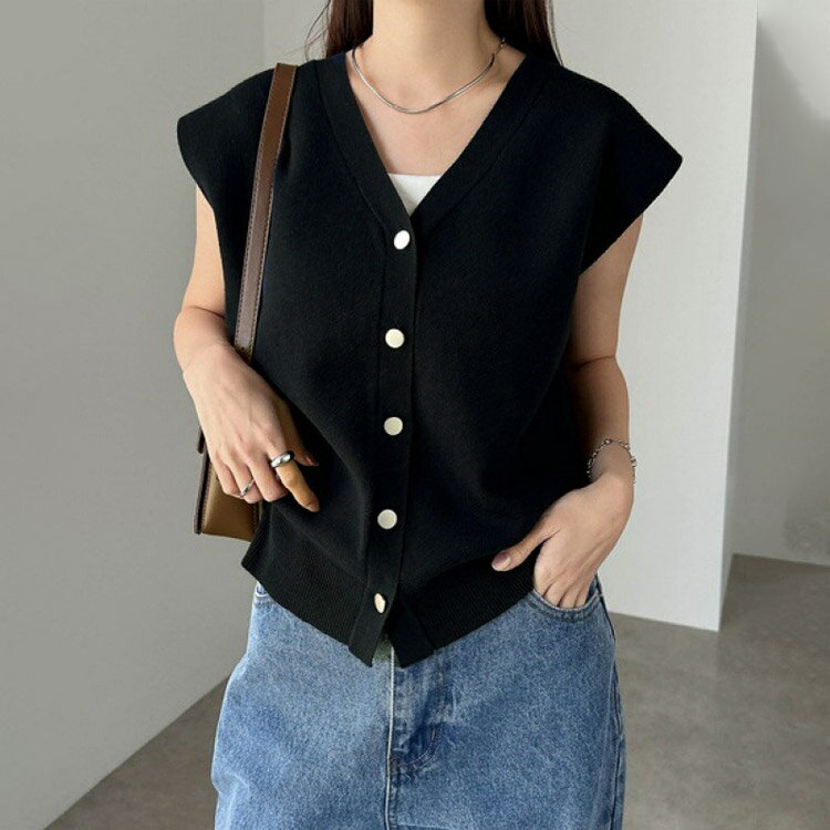 ベスト レディース 春夏 ボタン 無地 ノースリーブ 袖なし Vネック タンクトップ トップス アウター ニットベスト ジレ ニットトップス サマーニット 羽織り カーディガン 体型カバー 春 夏 秋 冬 レイヤード 重ね着 送料無料