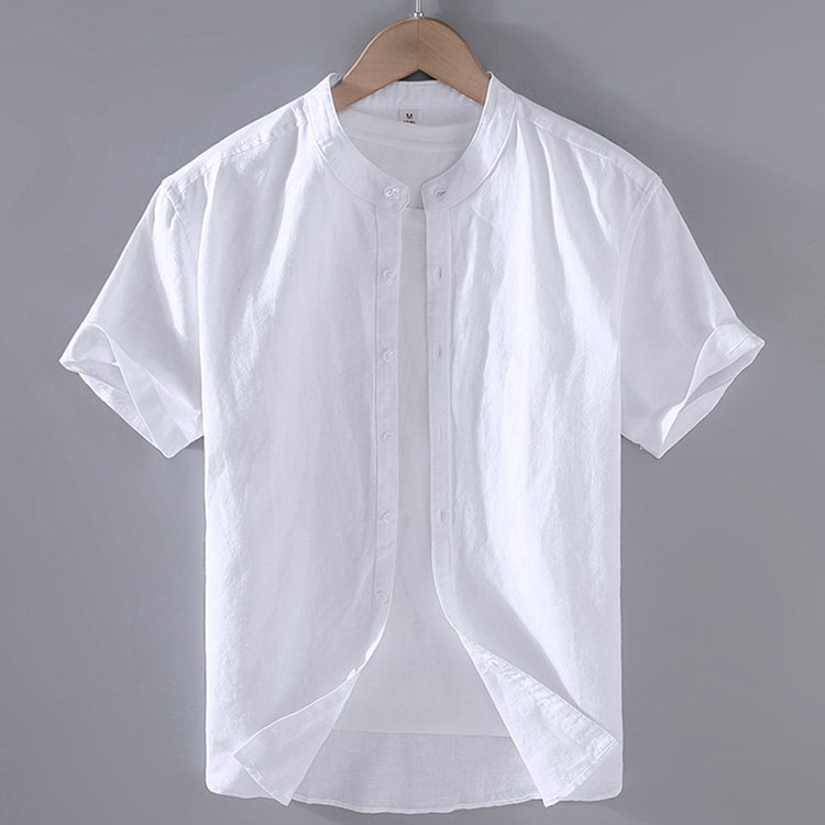 半袖リネンシャツ 薄手 メンズ 春 夏 綿麻シャツ カジュアルシャツ 半袖シャツ 夏用 スタンドカラー レギュラーカラー 2タイプ選択 無地 トップス シャツジャケット サマーシャツ きれいめ 通気性 軽量 おしゃれ 父の日