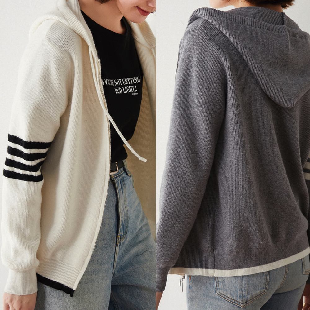 パーカー レディース ラインジップニットパーカー かわいい 肌着 厚手 オーバーサイズ 大きいサイズ 人気 暖かい 春 秋 長袖 おしゃれ ブランド 大きめ ロング 軽量 ジャケット ジップ トレーナー スウェット グレー コーデ あったか フリース ロゴ 韓国 冬 きれいめ