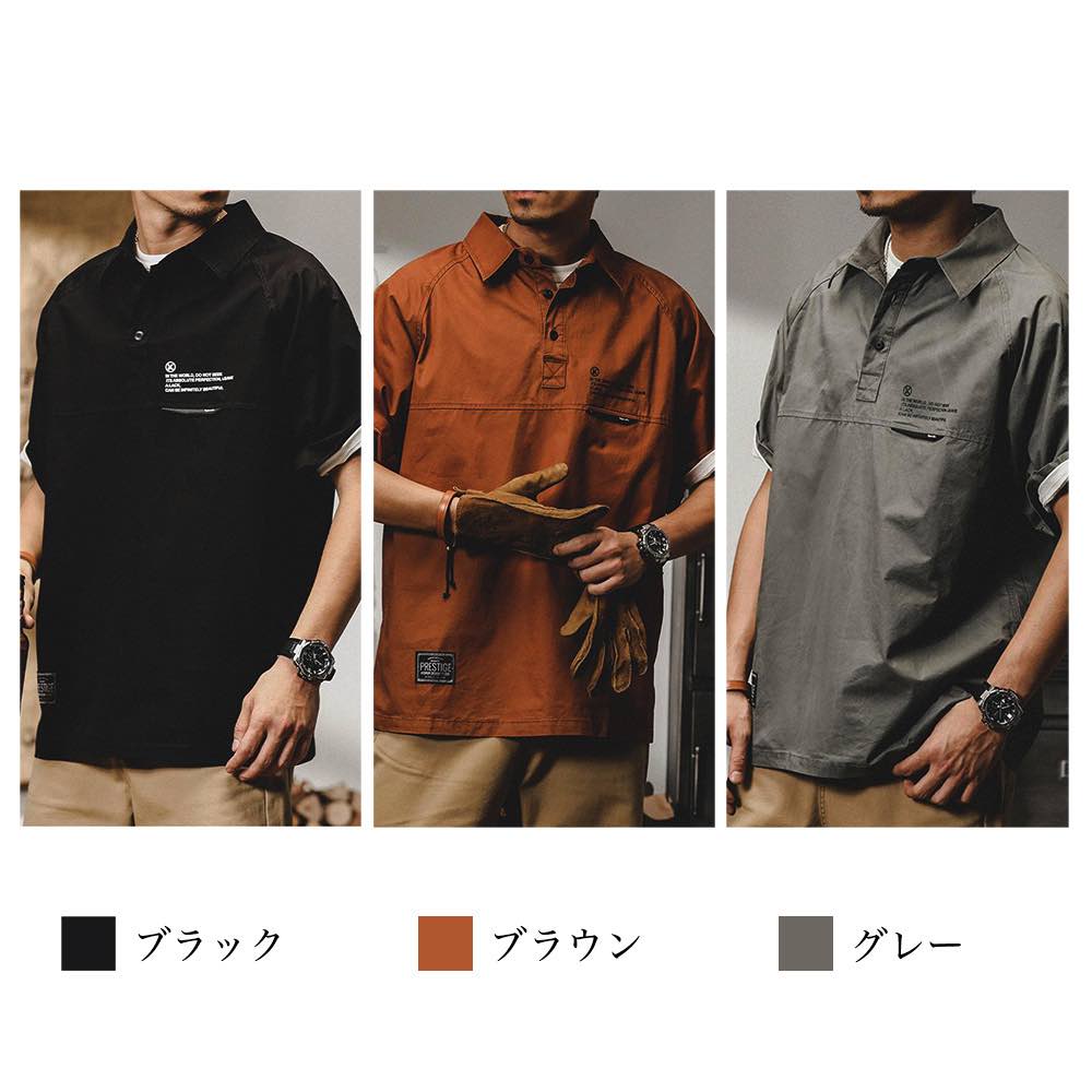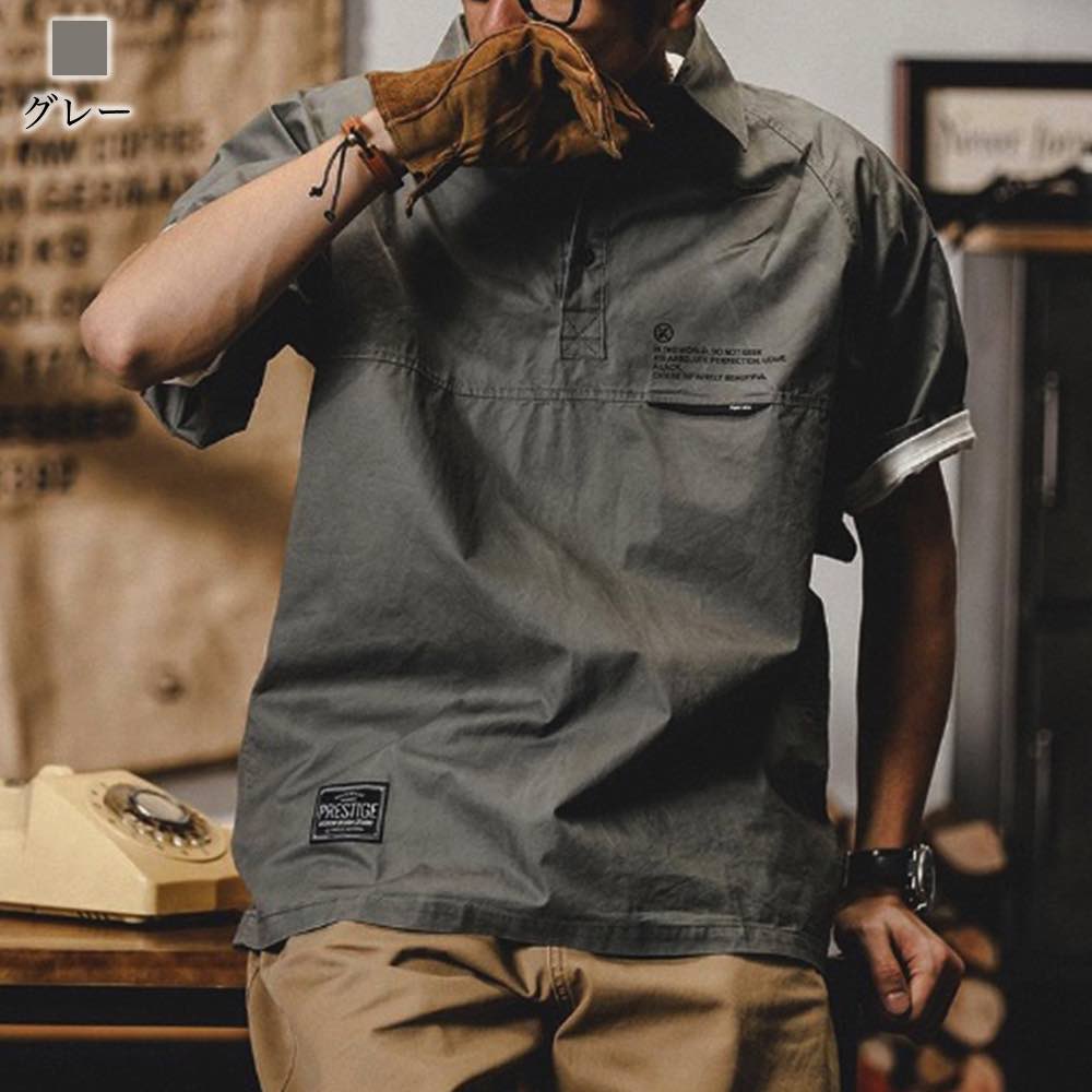 シャツ メンズ ミリタリーハーフボタンシャツ おもしろ ビジネス 派手 薄手 インナー 肌着 七分袖 ノーカラー 襟付き 大きいサイズ 黒 ドルマン ゴルフ おしゃれ ロング 半袖 夏 ネルシャツ コーデ カジュアル 涼しい フランネル オフィス ブランド オシャレ 春 Tシャツ