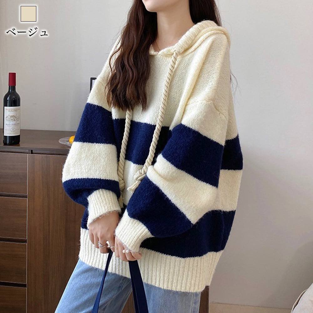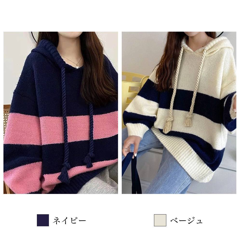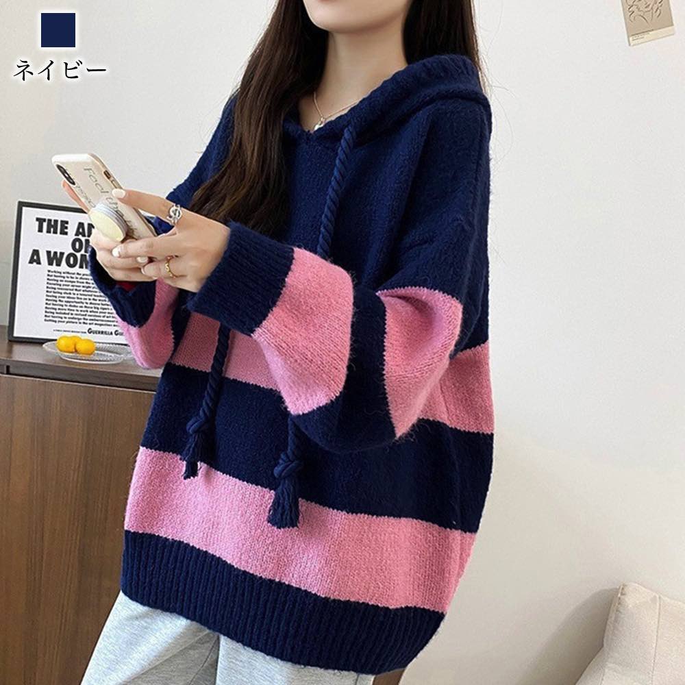 パーカー レディース ルーズボーダーニットパーカー 冬 あったか コーデ 秋 ジャケット オーバーサイズ ジップ ロゴ 韓国 肌着 春 大きいサイズ 大きめ ブランド おしゃれ 人気 長袖 きれいめ グレー ロング 軽量 トレーナー 暖かい 厚手 かわいい フリース スウェット