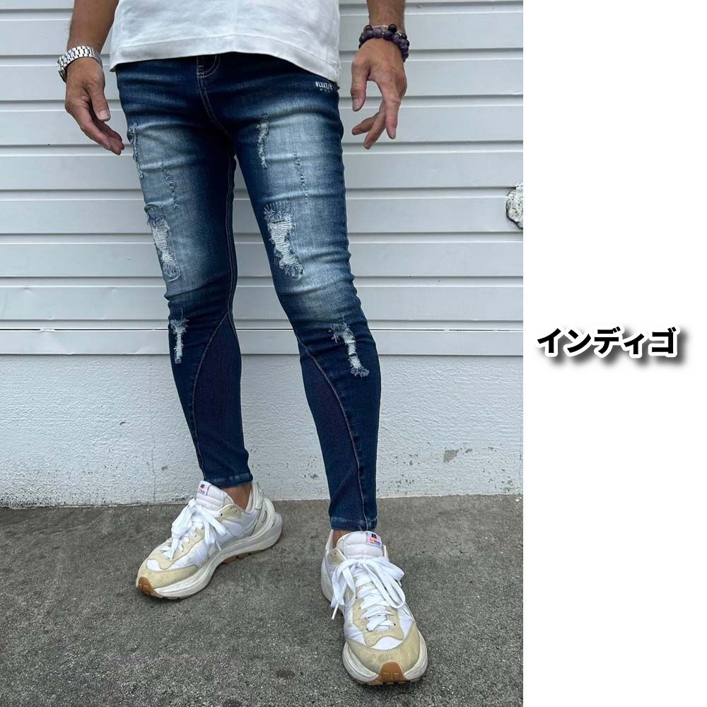 ストレッチデニム ジョガーパンツ メンズ レディース スキニー ジーンズ クラッシュ ダメージ ユーズド加工 LUXE/R ラグジュ 男女兼用 M L XL