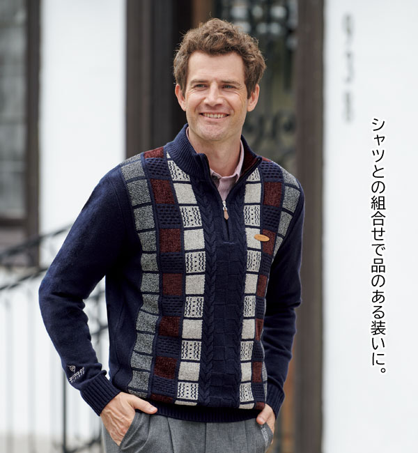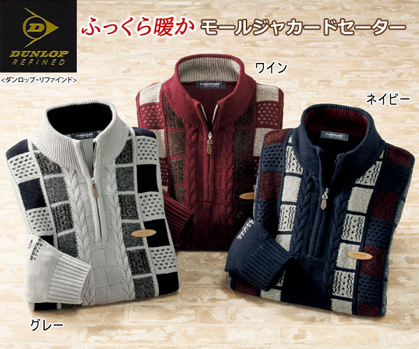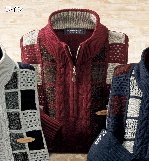 DUNLOP ダンロップ・リファインド モールジャカードセーター ハーフジップセーター 秋冬 40代 50代 60代 957862