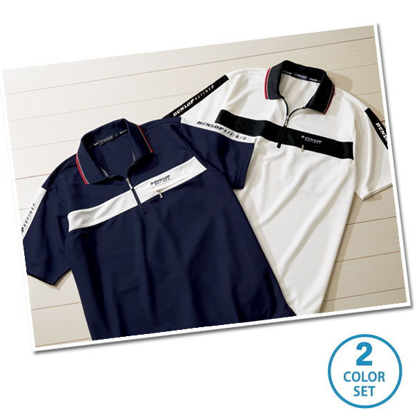 DUNLOP REFINED ダンロップ・リファインド ライン使いZIPポロシャツ 同サイズ2色組 接触冷感 メンズ 春夏秋 40代 50代 60代 958266