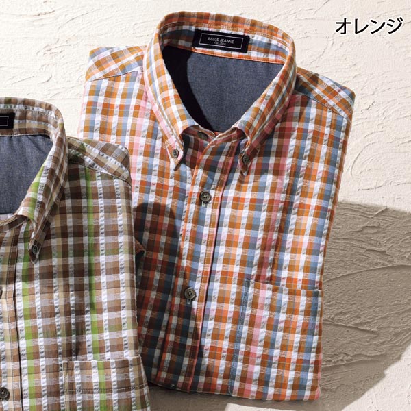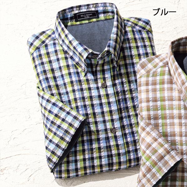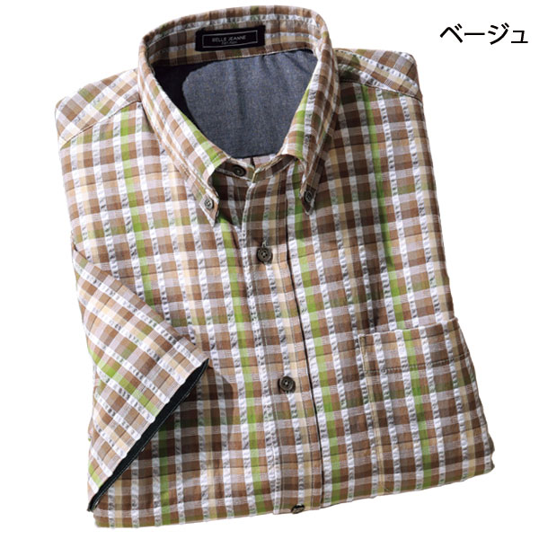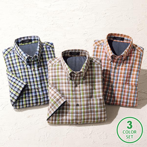 チェック柄シャツ 同サイズ3色組 半袖サッカーシャツ 吸汗速乾 メンズ 春夏秋 40代 50代 60代 958315