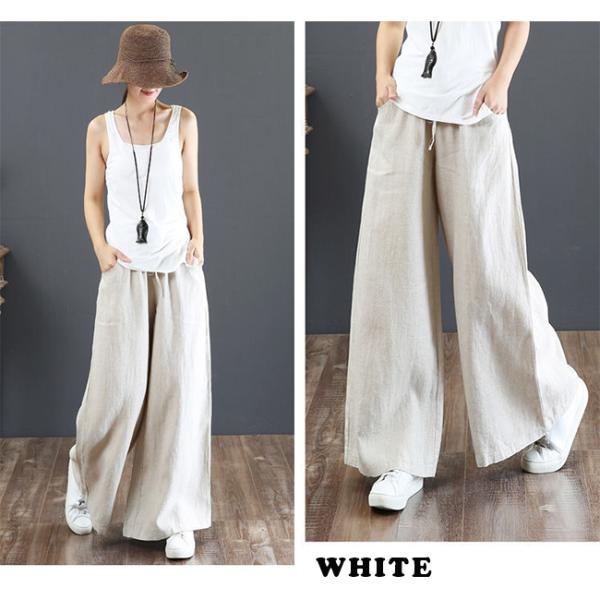 《在庫処分セール!送料無料!》リネン風ワイドズボン麻綿パンツ 無地 美脚 韓国スラックス 母の日 プレゼント レディース コットン ワイド パンツ オーガニック パンツ リネン ロングパンツ ワイドパンツ リネンパンツ 亜麻 麻 ガウチョパンツ シワ感体型カバー