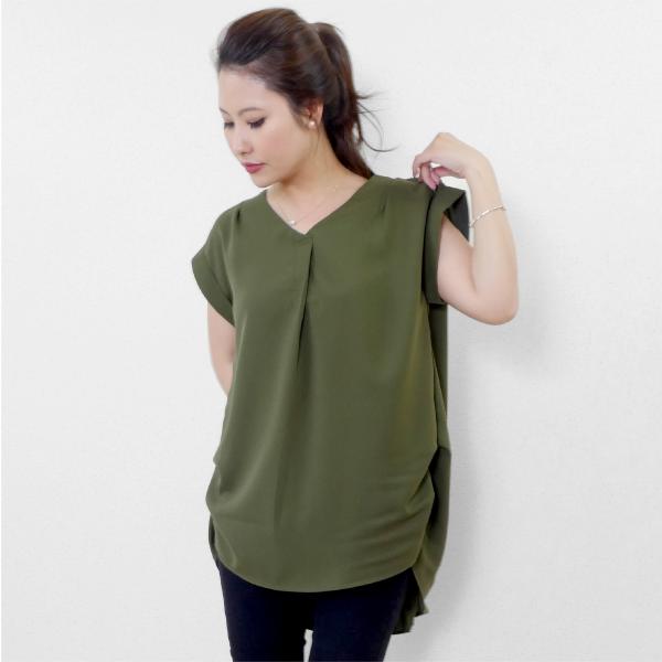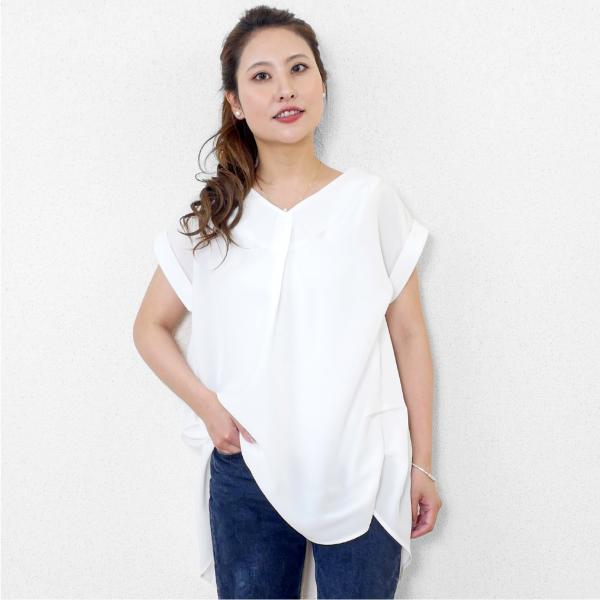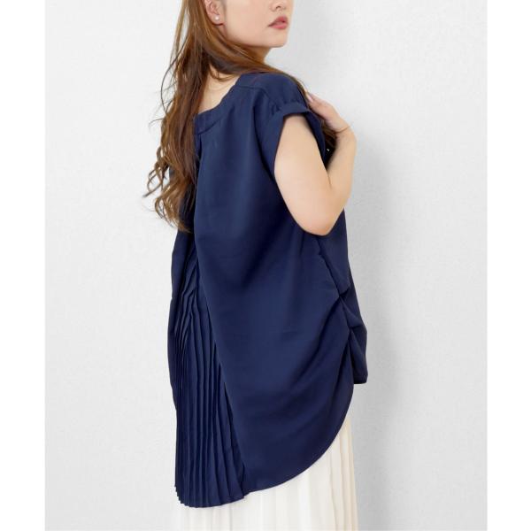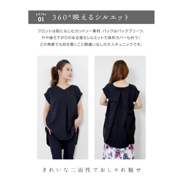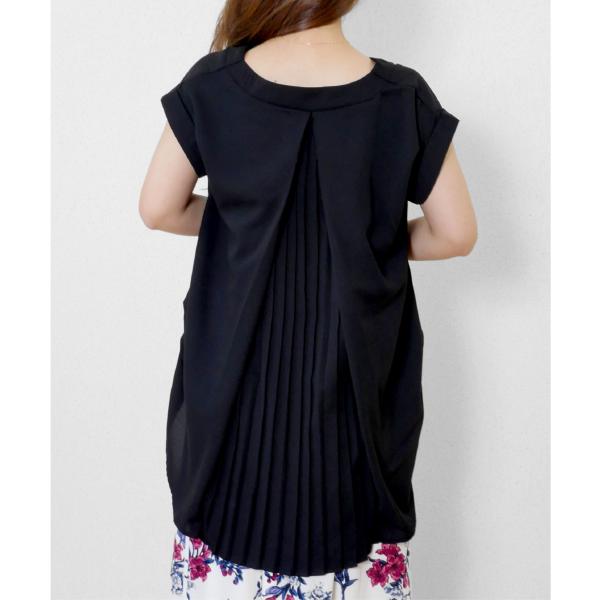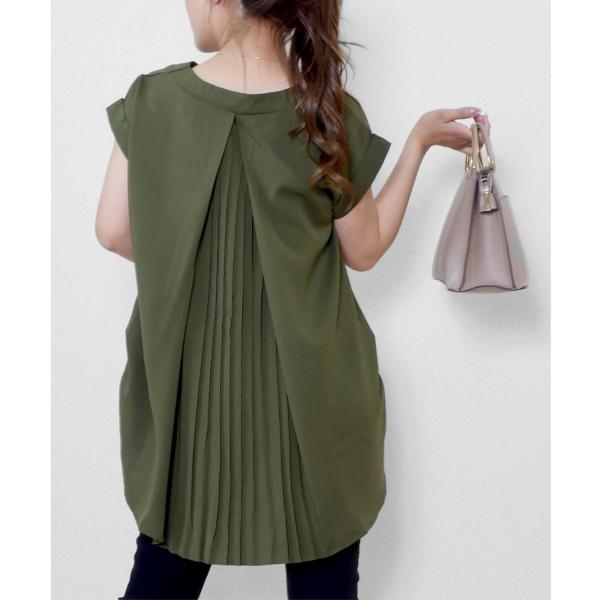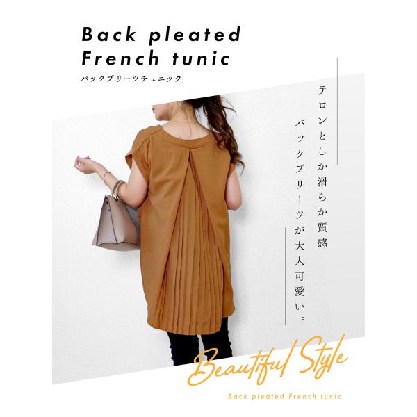 レディース バック プリーツ チュニック トップス シャツ ブラウス 後ろプリーツカットソー 体型カバー バックプリーツ 半袖 ゆったり フレンチスリーブ 無地 シンプル 大人カジュアル 春 夏 フリーサイズ whiteroom478
