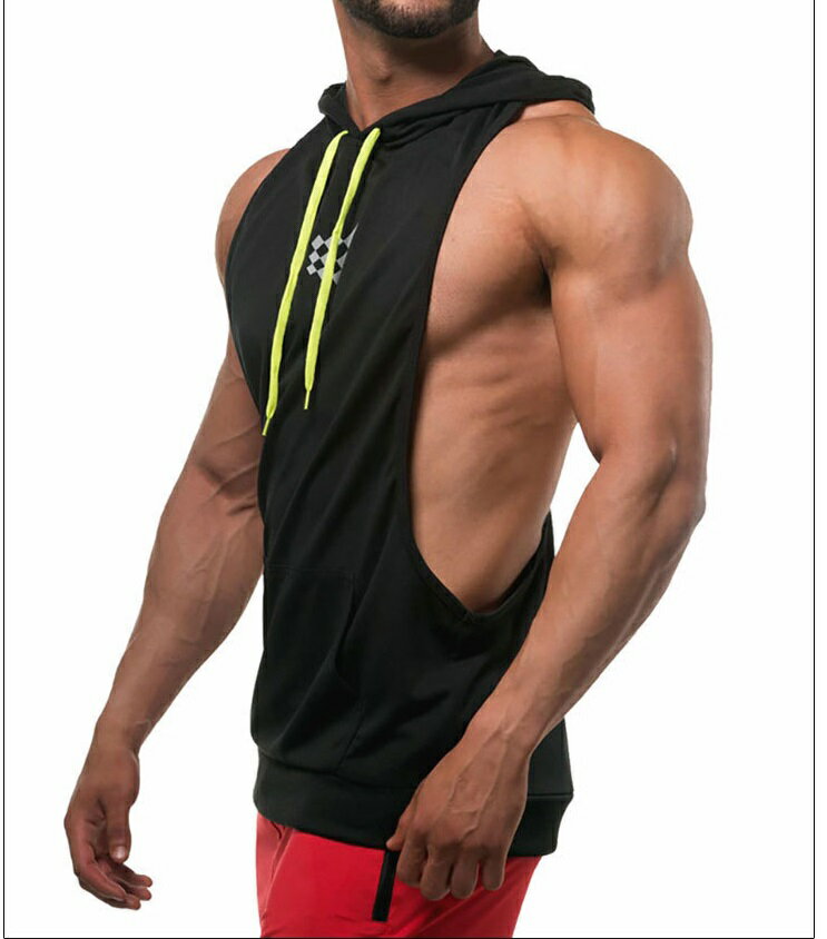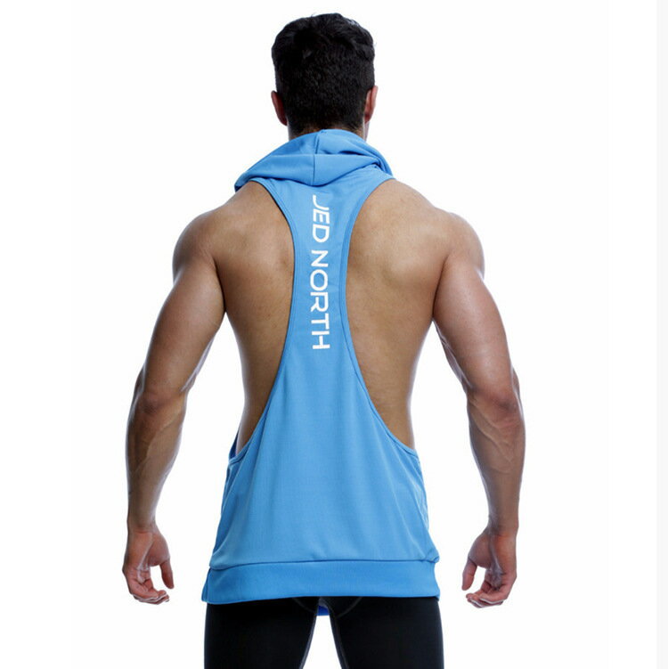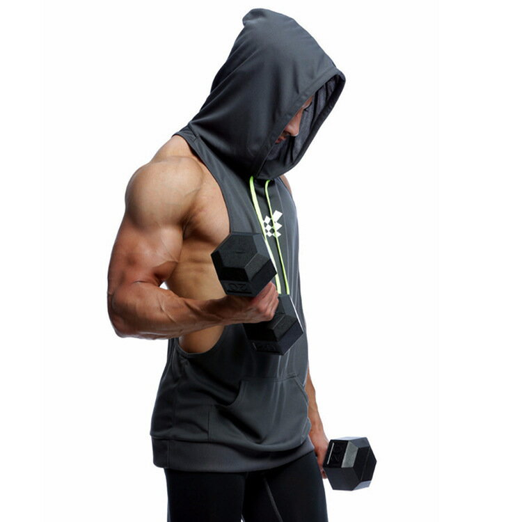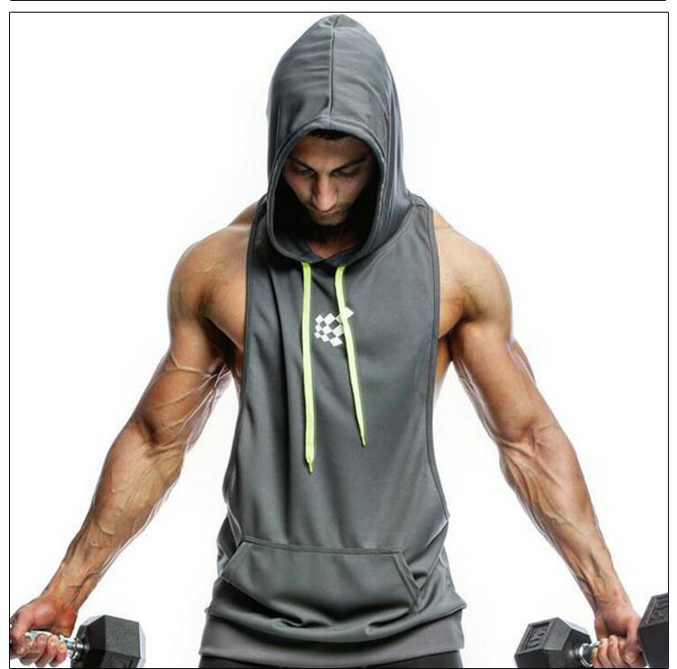 メンズ タンクトップ フード付き ノースリーブ トップス Tシャツ 英字柄 トレーニングウエア スポーツウェア フィットネス ジムウェア カジュアル 吸汗速乾 4色