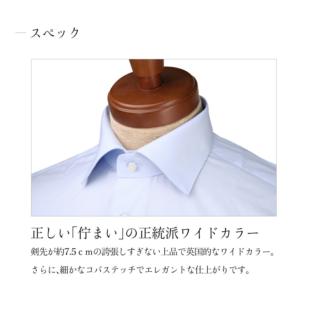 ワイシャツ ドレスシャツ メンズ ブロードシャツ 長袖 ブルー 無地 フォーマルシャツ 100番手 双糸 ブロード ワイドカラー 衣替え | クリスマス 祝い 結婚式 おしゃれ 日本製 高級 スーツ ビジネス 紳士服 フォーマル ブルー