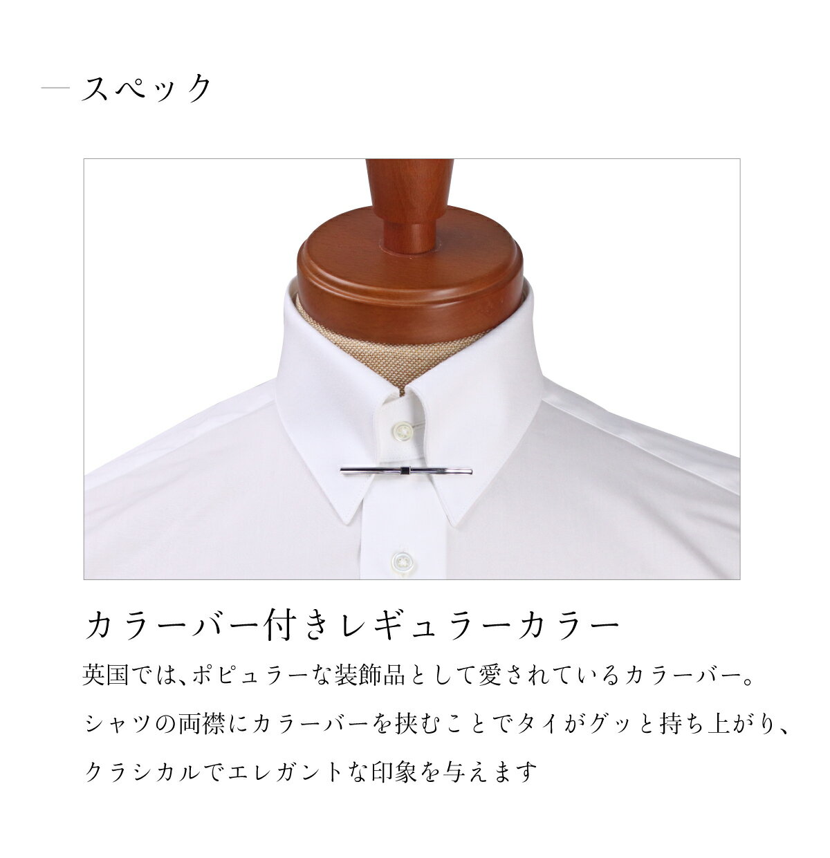 ワイシャツ 100番手双糸 白のブロード カラーバー付 レギュラーカラー ダブルカフス 細身 ドレスシャツ | 祝い 結婚式 メンズ ブランド ネクタイ おしゃれ 日本 高級 スーツ ビジネス 男性 フォーマル ホワイト