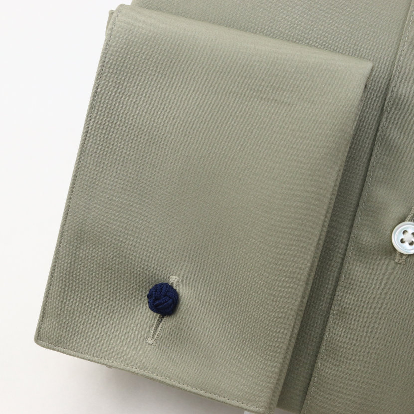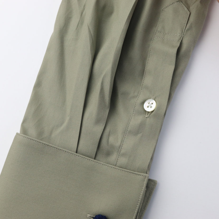 ワイシャツ ラウンドタブカラー クレリック ダブルカフス ドレスシャツ レトロ オリーブ スモーキーカラー 綿100% 日本製 | 祝い 結婚式 ブランド おしゃれ プレゼント メンズ 男性 ギフト 高級