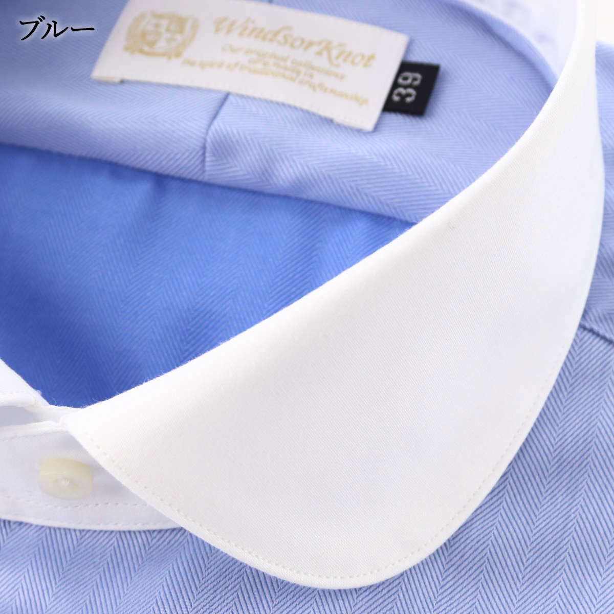 ワイシャツ ラウンドカラー 無地 ヘリンボーン 長袖 ドレスシャツ 日本製 イージーケア 綿100% | 祝い ビジネス 仕事 結婚式 ブランド おしゃれ プレゼント メンズ 男性 Yシャツ ギフト 高級 かっこいい