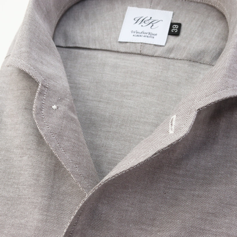 ワイシャツ イタリアンカラー シャツ ラウンド ワンピースカラー ブラウン オックス 日本製 綿100% 長袖 ドレスシャツ | 祝い 結婚式 ブランド おしゃれ ギフト ウォームビズ シャツ カジュアルシャツ