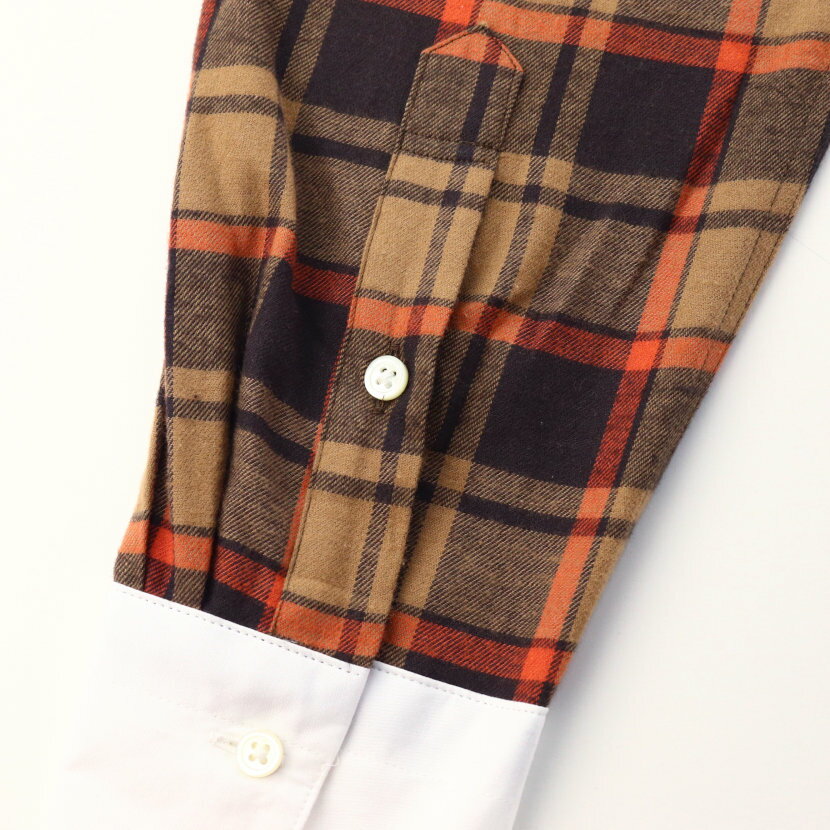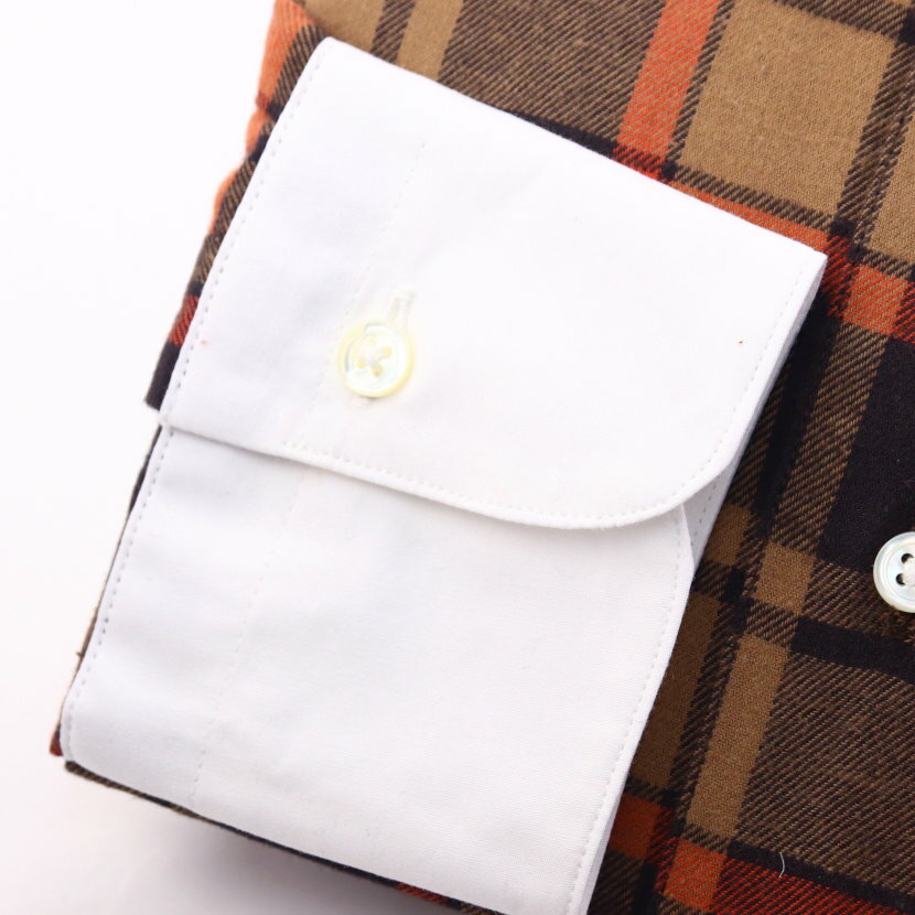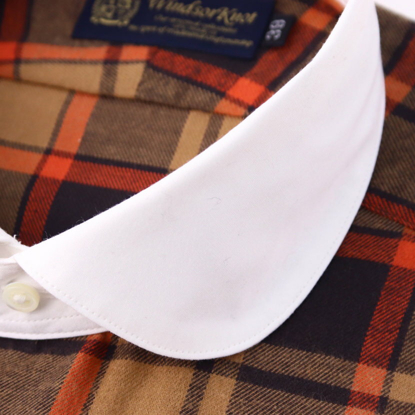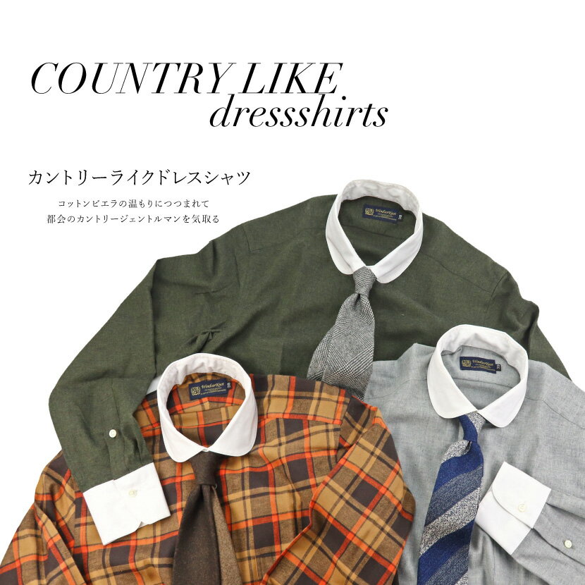 ワイシャツ 起毛素材 コットンビエラ ラウンド クレリックカラー ドレスシャツ ブラウン チェック 綿100% 日本製 メンズ 長袖 シャツ | 祝い 結婚式 プレゼント ブランド おしゃれ ギフト 高級 英国 カントリー