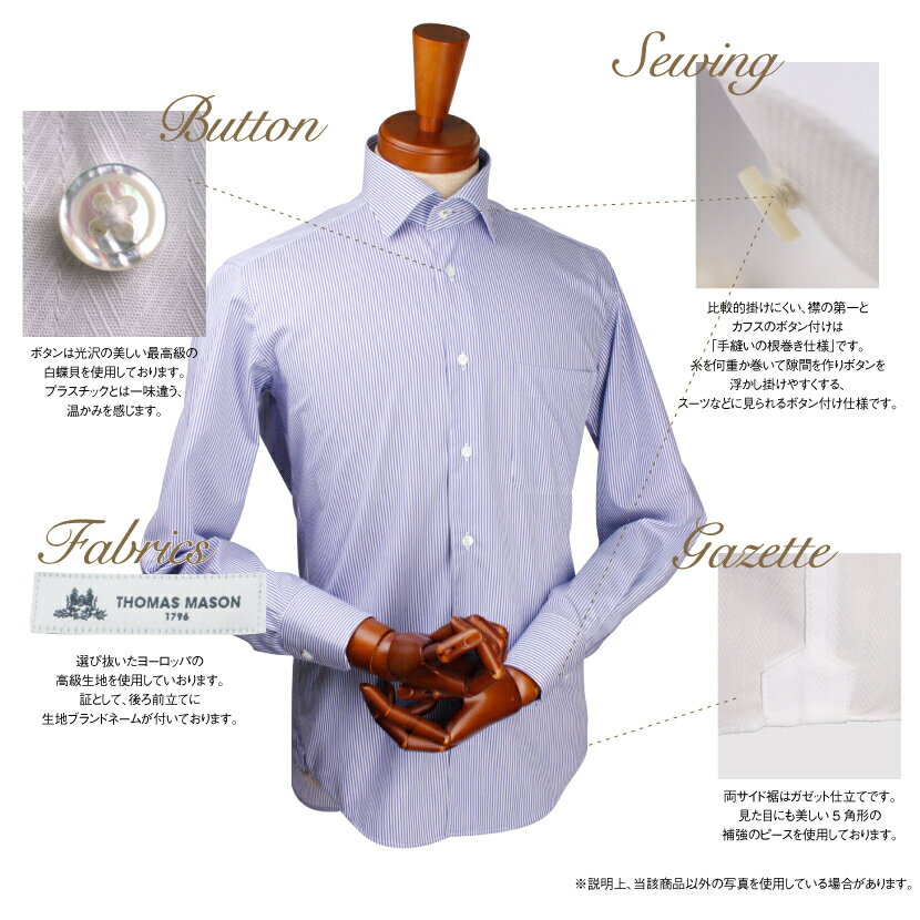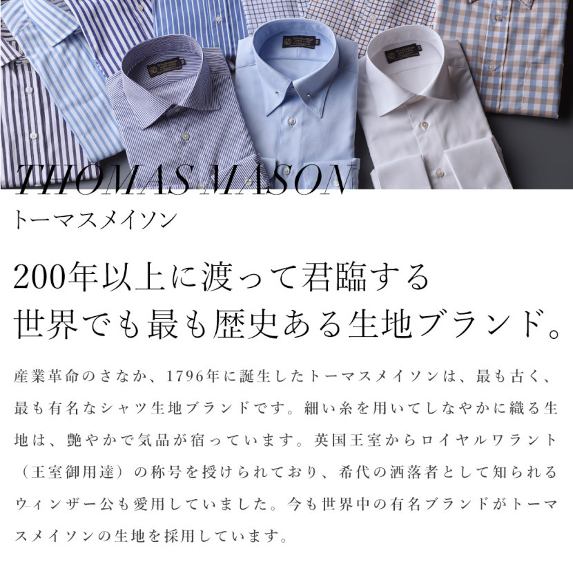 ワイシャツ 白 無地 ブロード ピンホールカラー シャツ THOMASMASON トーマスメイソン ジャーニー 綿100% 日本製 長袖 ドレスシャツ | バレンタイン 祝い 結婚式 メンズ ブランド おしゃれ 日本 高級 英国 イージーケア