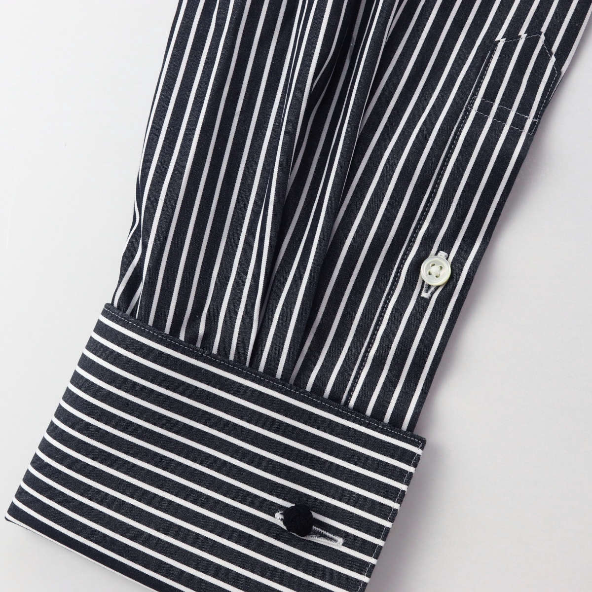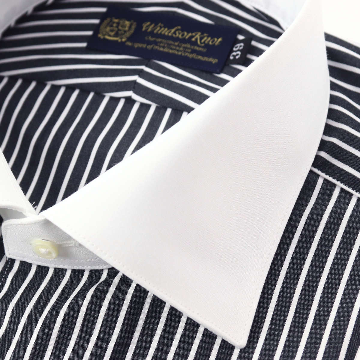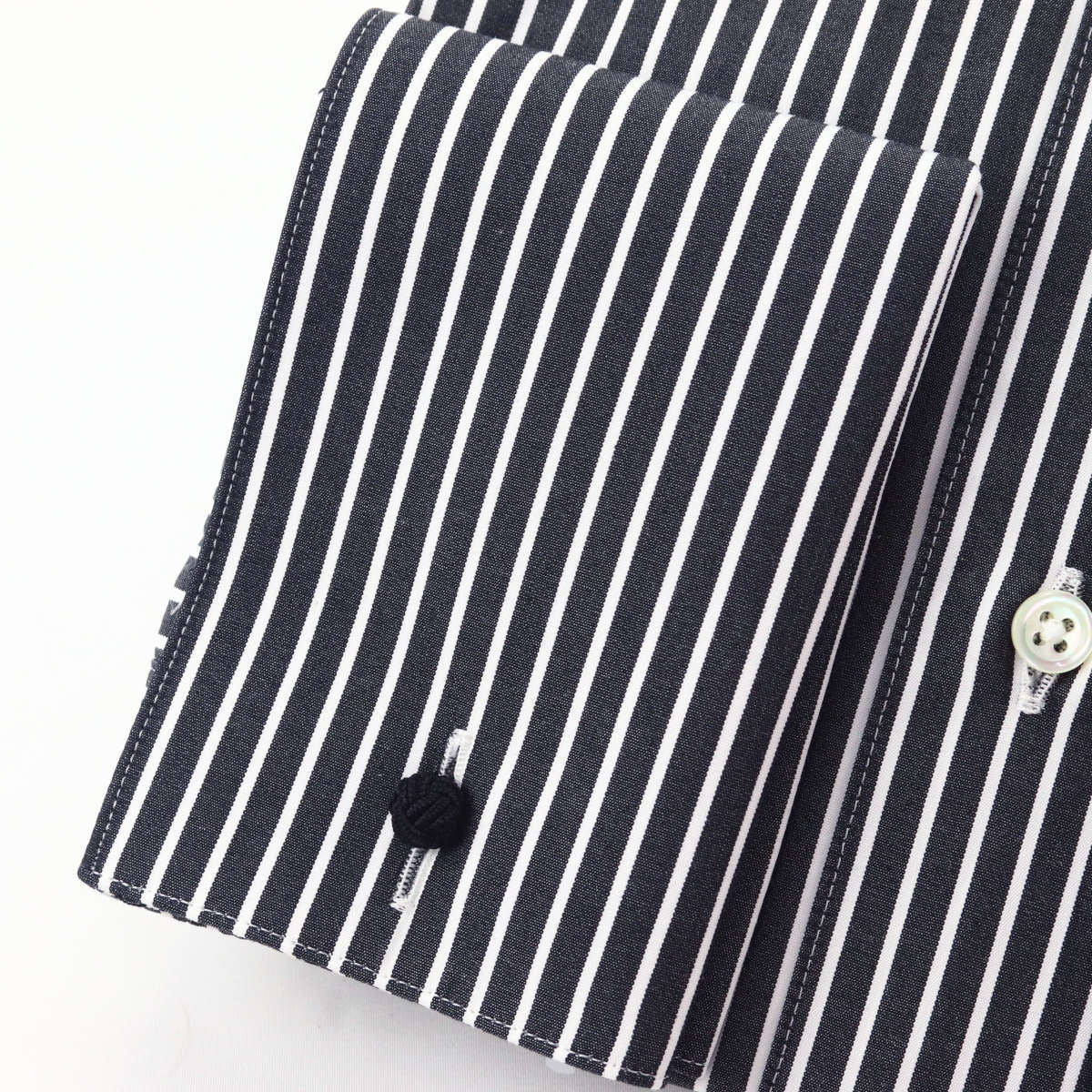 ワイシャツ ワイドカラー クレリック ダブルカフス ブラック 黒 地付き ストライプ 綿100% 日本製 長袖 ドレスシャツ | 祝い 結婚式 ビジネス ブランド 高級 プレゼント おしゃれ メンズ ギフト 英国 モダン クラシック ビジネスシャツ 紳士 国産